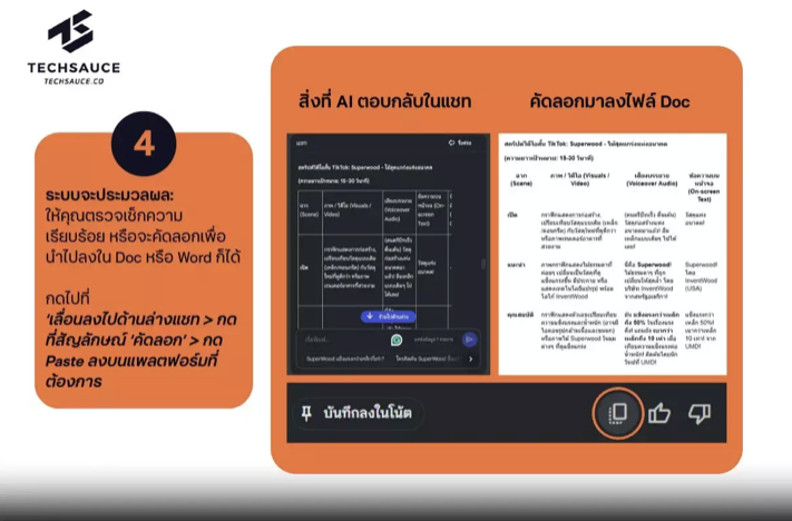 ตรวจสอบและคัดลอกผลลัพธ์ AI จะสร้างสคริปต์ออกมาให้คุณในรูปแบบข้อความ