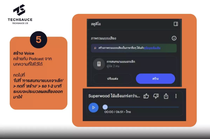 (4)AI ที่วามารถเปลี่ยนข้อมูลเป็นเสียงพูด หรือ Podcast