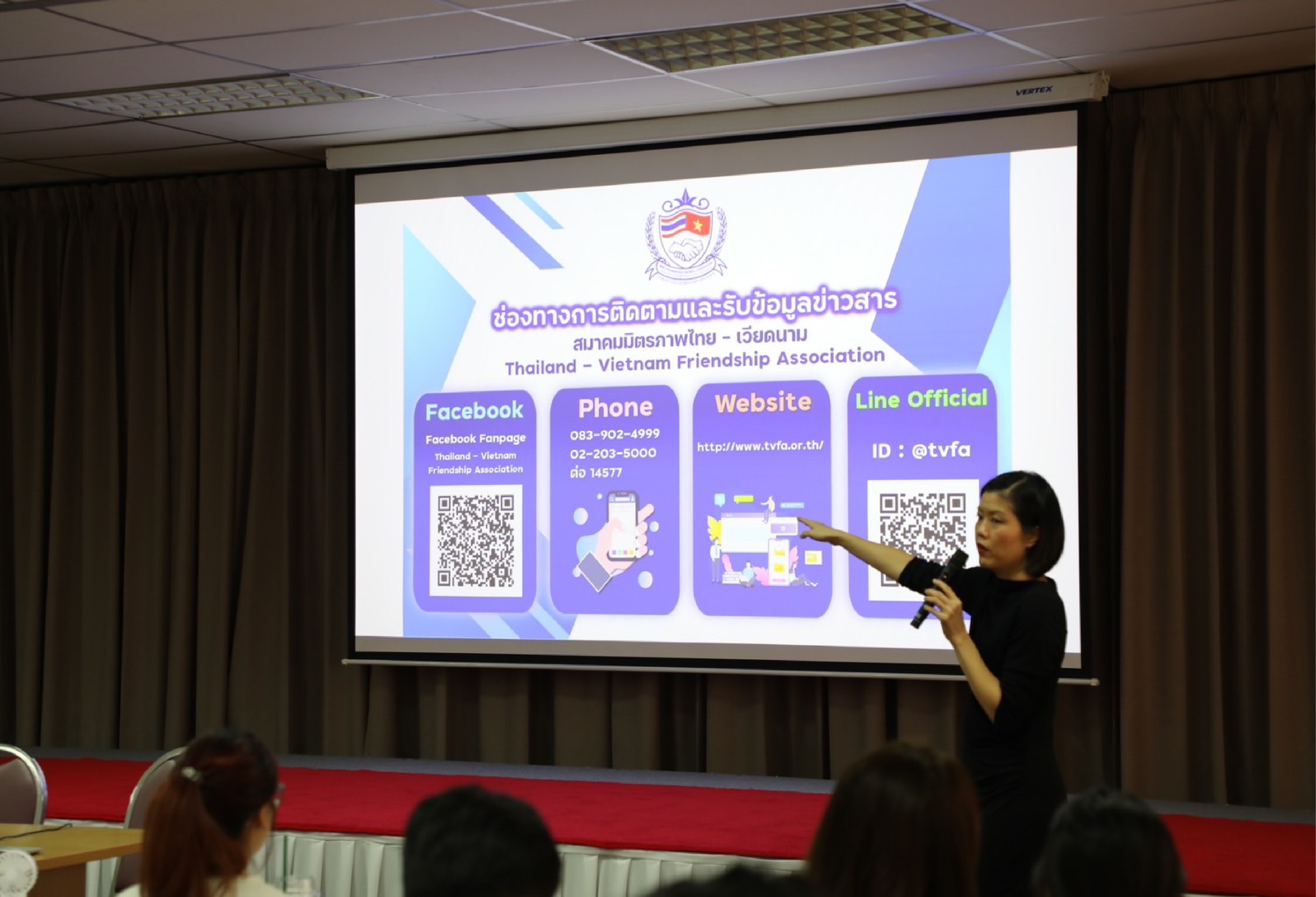 ในโอกาสนี้ ได้บรรยายสรุปข้อมูลเกี่ยวกับบทบาทและภารกิจของสมาคมมิตรภาพไทย-เวียดนาม และสมาคมมิตรภาพเวียดนาม-ไทย พร้อมทั้งได้ร่วมทำความรู้จักกับนักศึกษาที่เข้าร่วมโครงการ