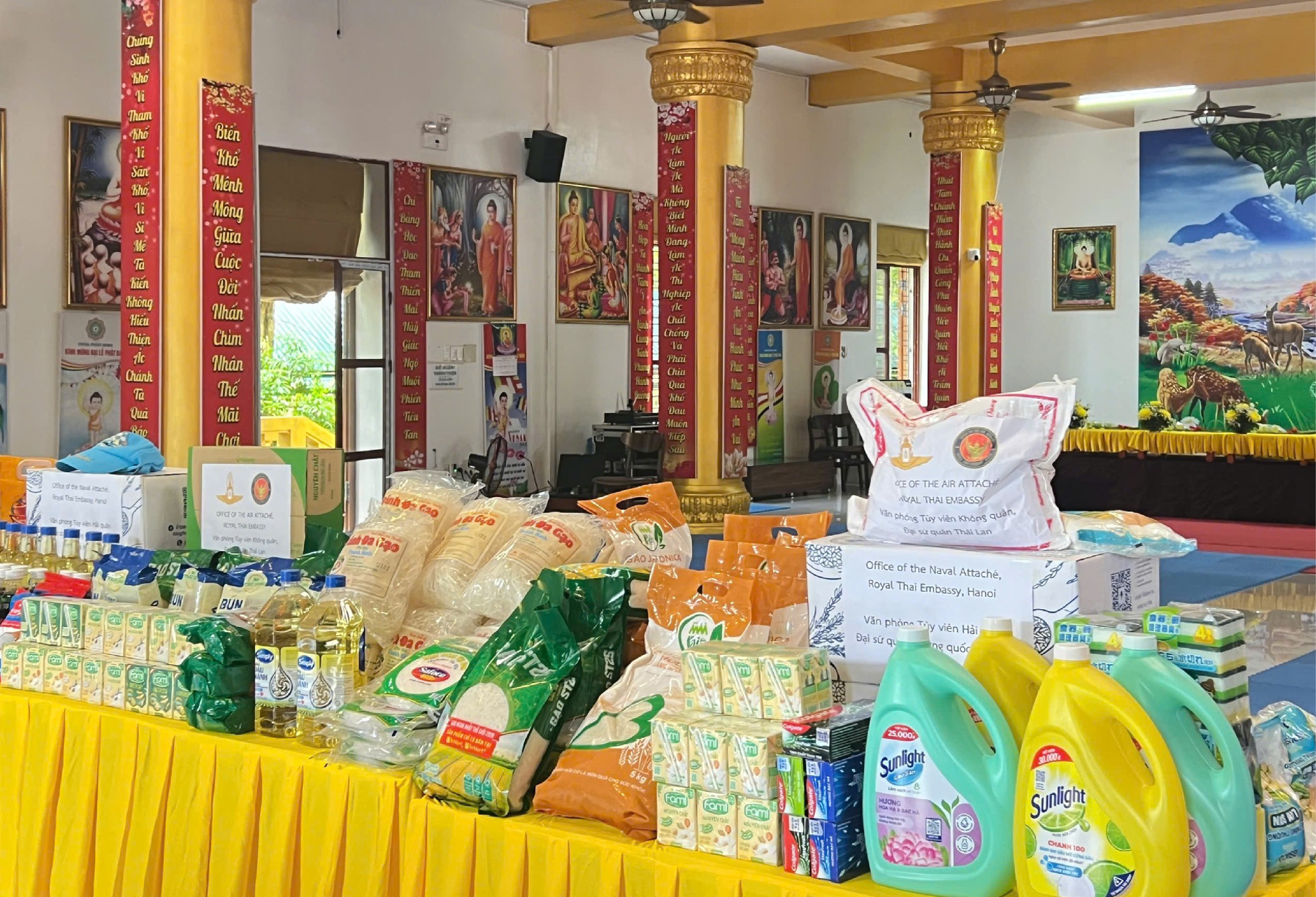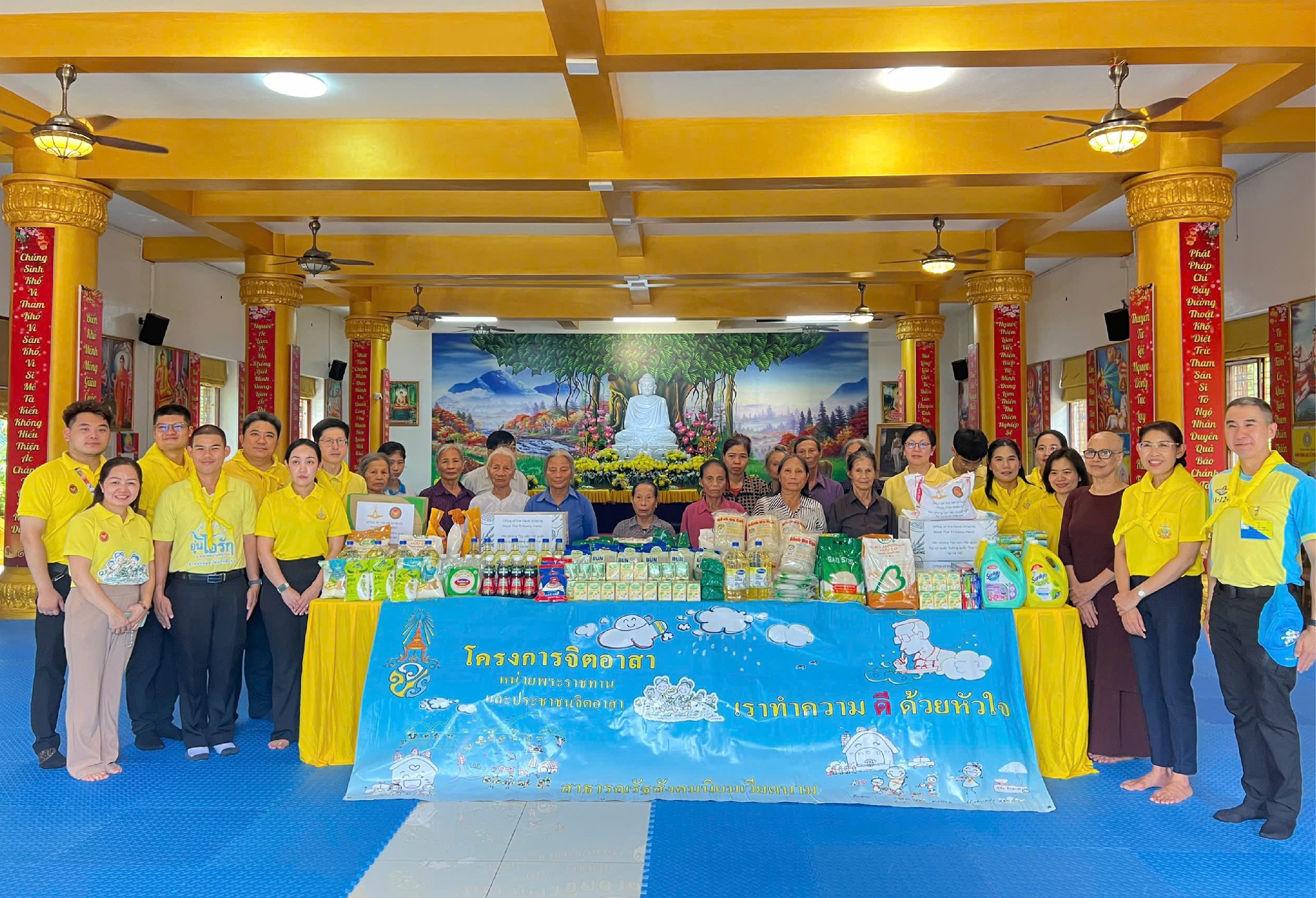 เมื่อวันที่ 18 ก.ย. 2568 สถานเอกอัครราชทูต ณ กรุงฮานอย ร่วมกับหน่วยงานทีมประเทศไทย ชุมชนไทยและผู้แทนภาคเอกชนไทยในเวียดนาม จัดกิจกรรมจิตอาสาบำเพ็ญสาธารณประโยชน์และบำเพ็ญสาธารณกุศล ณ วัดฟุกมินห์เถรวาท จังหวัดฮึงเอียน โดยสถานเอกอัครราชทูตฯ ได้จัดโรงทานแจกจ่ายอาหารให้แก่ชาวเวียดนามในชุมชนของวัด รวมทั้งบริจาคสิ่งของอุปโภคบริโภค อาทิ ข้าวสารอาหารแห้งและของใช้จำเป็น ให้แก่วัดเพื่อนำไปแจกจ่ายให้แก่ผู้ยากไร้ รวมถึงใช้ในกิจการของวัดต่อไป