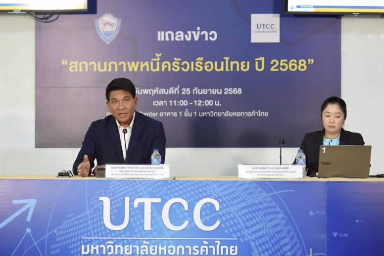 นายธนวรรธน์ พลวิชัย อธิการบดีและประธานที่ปรึกษาศูนย์พยากรณ์เศรษฐกิจและธุรกิจ มหาวิทยาลัยหอการค้าไทย กล่าวว่า จากผลสำรวจหนี้ครัวเรือนไทยในปี 2568 ไทยมีหนี้สูงขึ้น และประเทศไทยมีปัญหาหนี้ครัวเรือนมา 10 ปีแล้ว มีสัดส่วนสูงกว่า 80% ของจีดีพี โดยปี 2567 ไทยมีภาระหนี้ครัวเรือนราว 6 แสนบาท/ครัวเรือน