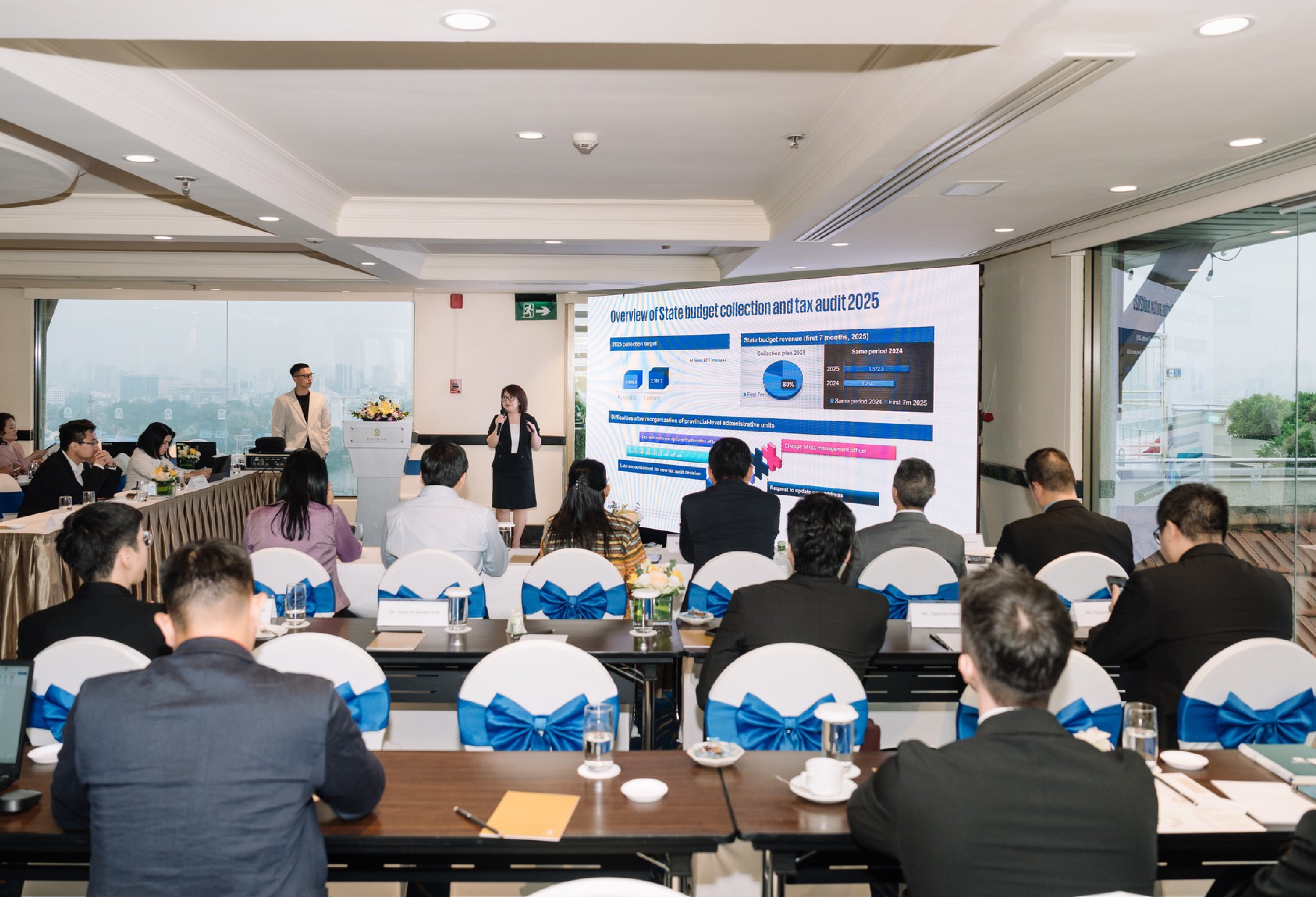 โดยเฉพาะเมื่อเผชิญกับมาตรการภาษีตอบโต้ของสหรัฐ และนาง Pho Thi My Hanh, Director of Corporate Tax บริษัท KPMG in Vietnam บรรยายเกี่ยวกับการเปลี่ยนแปลงกฏระเบียบด้านภาษีที่สำคัญโดยรัฐบาลเวียดนาม ในปี 2568 เช่น ภาษีมูลค่าเพิ่ม ใบกำกับภาษี และกฎหมายภาษีเงินได้นิติบุคคล งานสัมมนาดังกล่าวมีผู้เข้าร่วมแบบ On-site กว่า 70 คน และ Online อีกกว่า 70 คน/หน่วยงาน รวมทั้งภาคเอกชนไทย และหอการค้าจังหวัดต่าง ๆ และสำนักงานพาณิชย์จังหวัดต่าง ๆ ของไทย