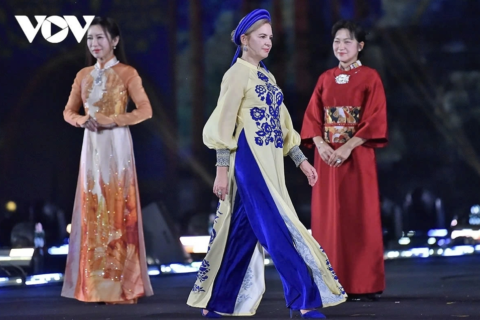 งานนี้ดึงดูดการมีส่วนร่วมของคู่สมรสของเอกอัครราชทูตจากสหรัฐอเมริกา ญี่ปุ่น สาธารณรัฐเช็ก และยูเครน ซึ่งจัดแสดง Áo Dài ของเวียดนามที่ออกแบบโดย Anh Thu ของแบรนด์ Áo Dài Ngan An