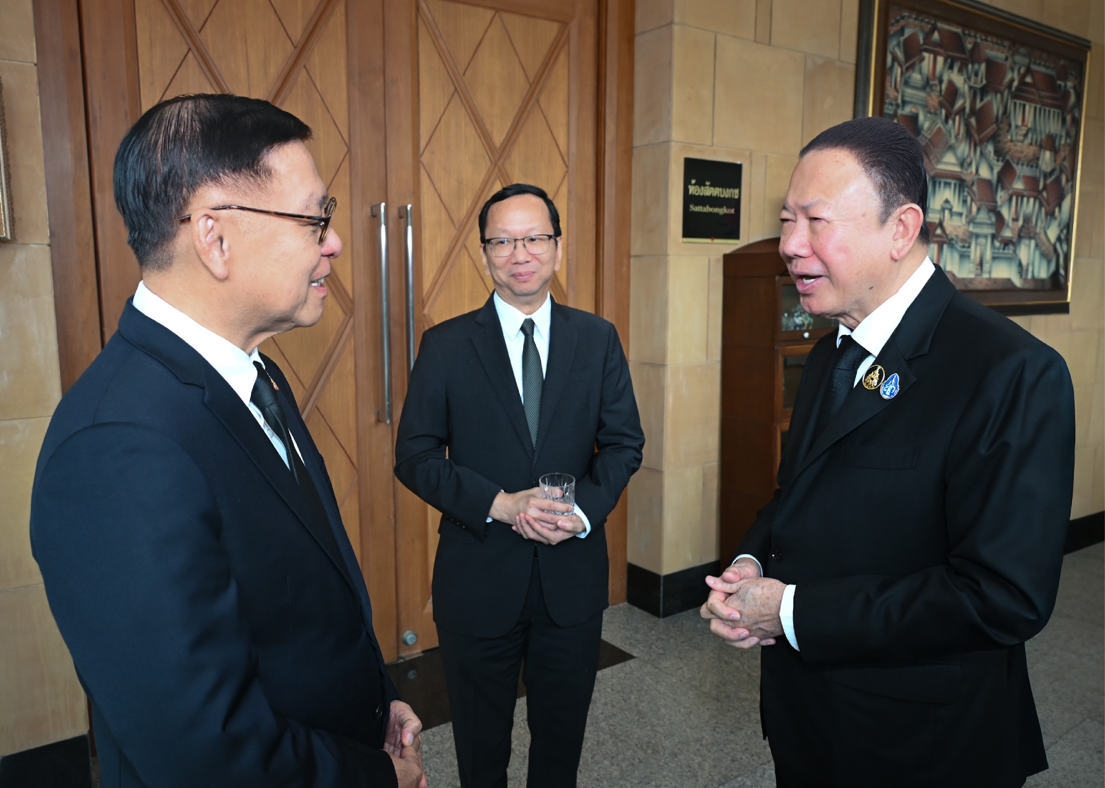 คุณเชษฐพันธ์ มากสัมพันธ์ รองปลัดกระทรวงการต่างประเทศ กลุ่มภารกิจส่งเสริมกิจการต่างประเทศ, คุณจุลวัจน์ นรินทรางกูร ณ อยุธยา อธิบดีกรมความร่วมมือระหว่างประเทศ, คุณปิยภักดิ์ ศรีเจริญ อธิบดีกรมเอเชียตะวันออก, คุณรุจิกร แสงจันทร์ อธิบดีกรมเศรษฐกิจระหว่างประเทศ, คุณวรพันธุ์ ศรีวรนารถ ผู้อำนวยการกองเชียตะวันออก 2 ร่วมด้วย