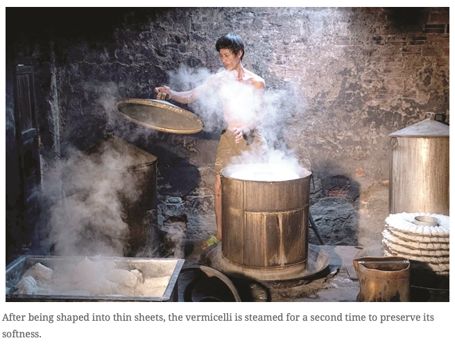 ในการผลิตวุ้นเส้นคุณภาพสูง ต้องเลือกข้าวอย่างระมัดระวัง ล้างให้สะอาดและแช่ค้างคืน จากนั้นบดละเอียดด้วยน้ําเป็นแป้งข้าวข้น ซึ่งนึ่ง นวด และกวนอย่างต่อเนื่องจนเป็นแป้งที่เรียบและยืดหยุ่น