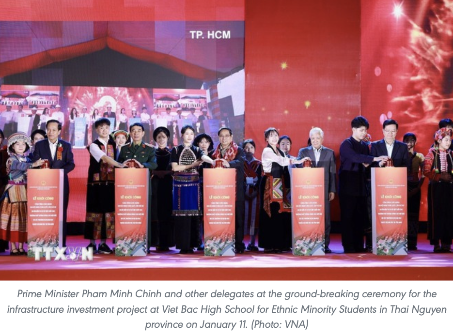 Thai Nguyen (VNA) – การลงทุนในโครงสร้างพื้นฐานสําหรับสถาบันการศึกษาในชนกลุ่มน้อยและพื้นที่ภูเขาเป็นการลงทุนในความเท่าเทียมในการเข้าถึงการศึกษา นายกรัฐมนตรี Pham Minh Chinh กล่าวเมื่อวันที่ 11 มกราคม