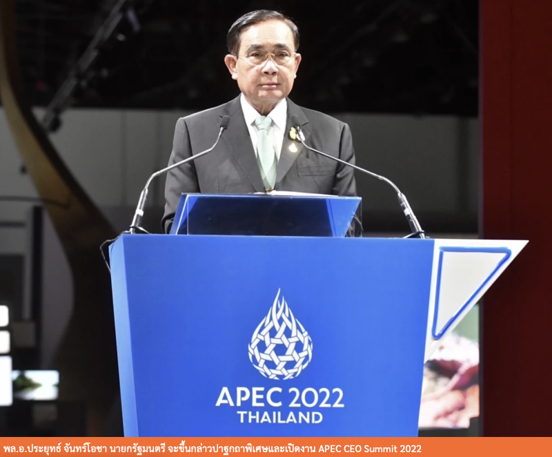 พล.อ.ประยุทธ์ จันทร์โอชา นายกรัฐมนตรี จะขึ้นกล่าวปาฐกถาพิเศษและเปิดงาน APEC CEO Summit 2022