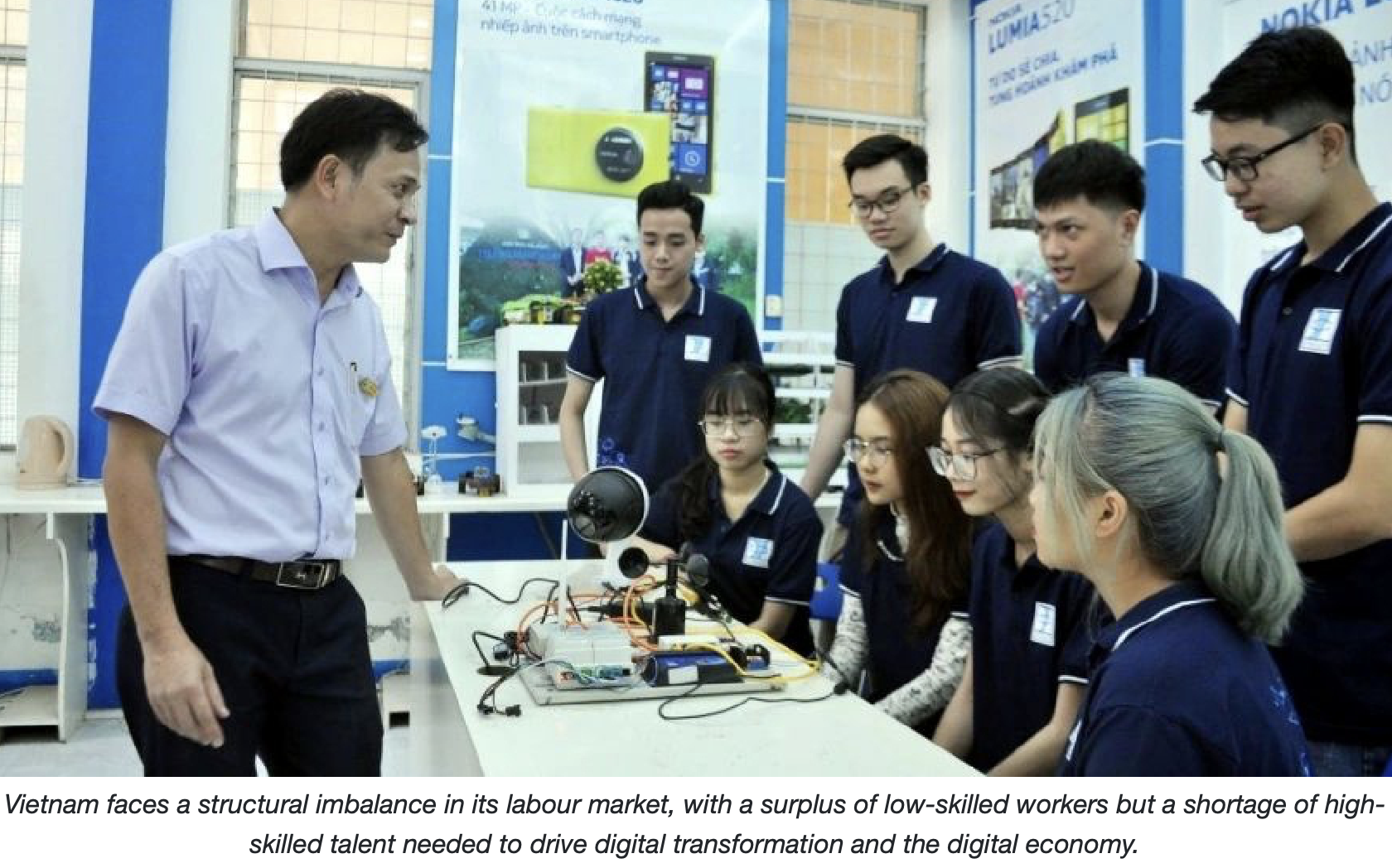 สิ่งนี้สร้างความขัดแย้ง: เวียดนามได้รับประโยชน์จากประชากรวัยหนุ่มสาวและการนําเทคโนโลยีชั้นสูงมาใช้ แต่ต้องเผชิญกับการขาดแคลนทักษะดิจิทัลขั้นสูงอย่างร้ายแรง