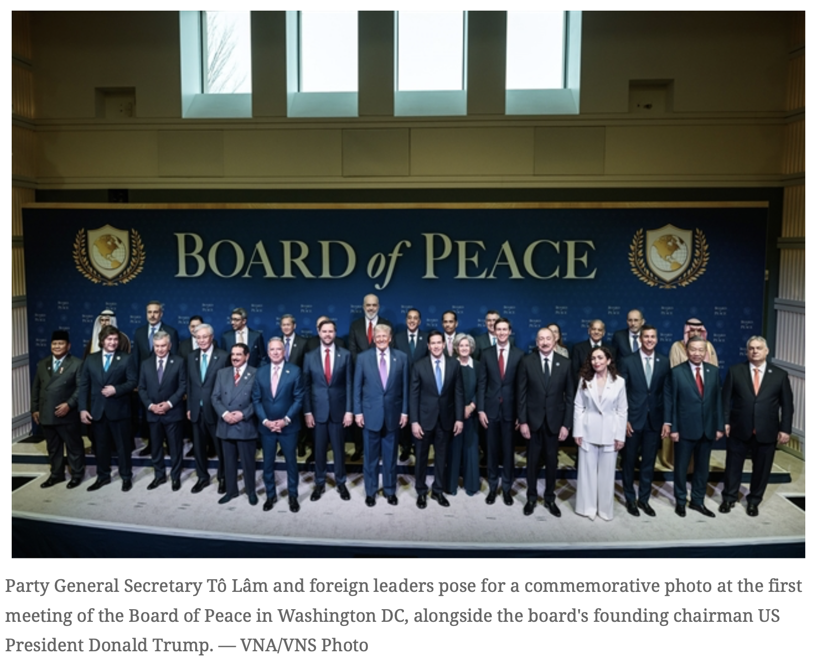 ฮานอย - การเดินทางของเลขาธิการพรรคคอมมิวนิสต์เวียดนาม (CPV) ไปยังกรุงวอชิงตัน ดี.ซี. เพื่อเข้าร่วมการประชุมคณะกรรมการสันติภาพสําหรับฉนวนกาซาครั้งแรกในวันที่ 18-20 กุมภาพันธ์ ตามคําเชิญของประธานาธิบดีโดนัลด์ ทรัมป์ ของสหรัฐฯ นับเป็นความก้าวหน้าที่สําคัญในแนวรบพหุภาคีและทวิภาคี