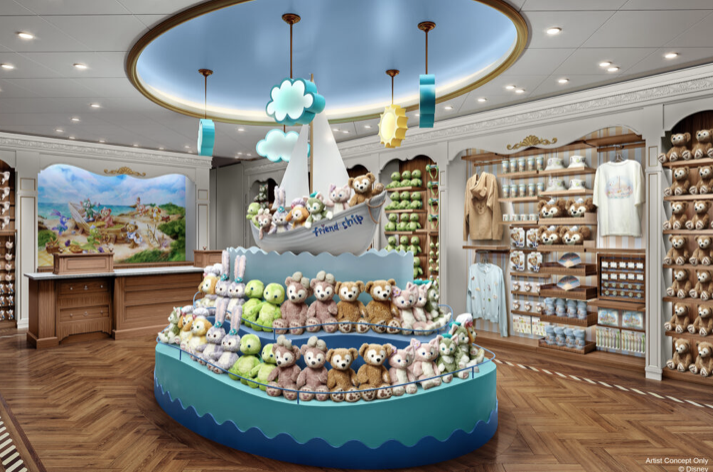 เสริมทัพความฟินด้วยพื้นที่ช็อปปิ้งกว้างขวางกว่า 17,000 ตารางฟุต ให้แขกผู้เข้าพักได้เลือกซื้อคอลเล็กชั่นสุดพิเศษกันอย่างจุใจ ประสบการณ์การช็อปปิ้งหลายแห่งบนเรือถือเป็นความพิเศษใหม่ล่าสุดสำหรับ Disney Cruise Line ได้แก่ ร้าน World of Disney, ร้าน National Geographic และร้าน Duffy and Friends