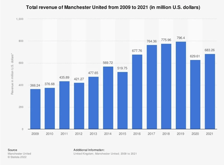 รายได้รวม แมนฯ ยูไนเต็ด ย้อนหลัง 4 ปี (หน่วย: ดอลลาร์)