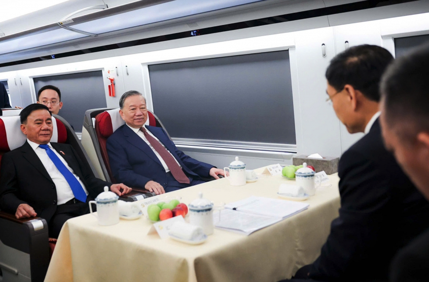 [VOVWORLD] - ในวันพฤหัสบดี เลขาธิการพรรคและประธานาธิบดี To Lam และภรรยาของเขา พร้อมด้วยคณะผู้แทนเวียดนามระดับสูง ได้ออกจากปักกิ่งโดยรถไฟความเร็วสูงเพื่อเยี่ยมชมเมืองหนานหนิง