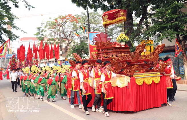รองประธานคณะกรรมการประชาชนของเขต Phan Dinh Phung Tran Dinh Thin กล่าวว่าพิธีช่วยปลูกฝังความรักชาติ เสริมสร้างความสามัคคีของชาติ และส่งเสริมคุณค่าทางวัฒนธรรมในท้องถิ่นให้กับผู้อยู่อาศัยและผู้มาเยือน
