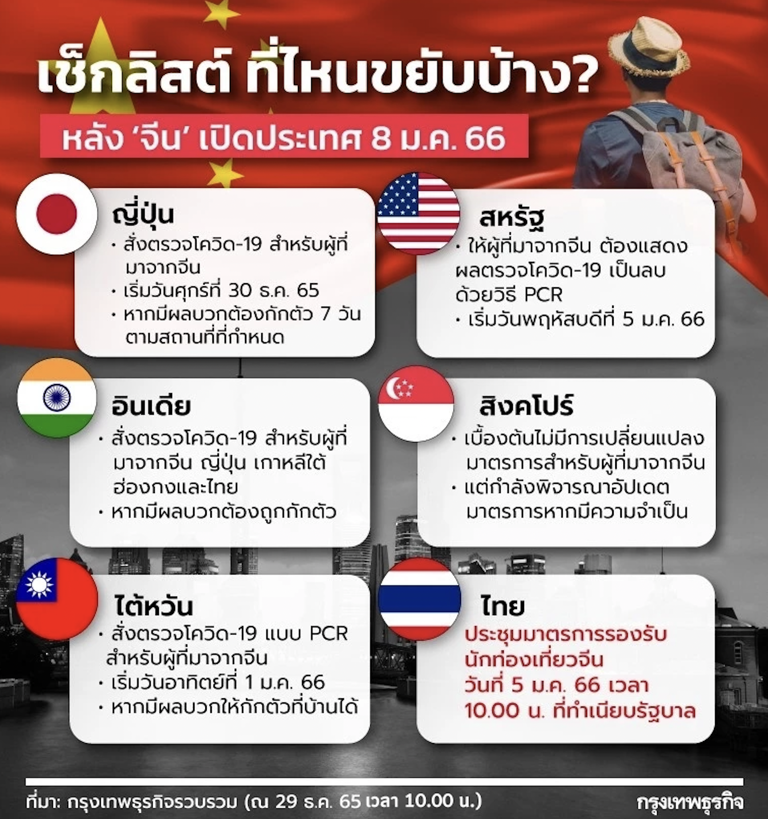 เช็กลิสต์! ประเทศ-ดินแดนไหนขยับบ้าง? หลัง "จีน" ประกาศเปิดประเทศ 8 ม.ค.66
