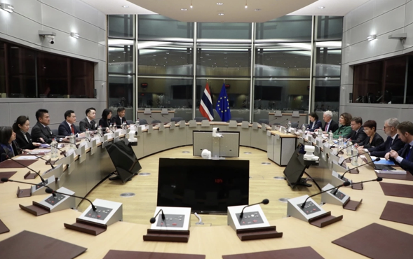 “เราใช้ความพยายามในการทำ FTA กับสหภาพยุโรปเกือบ 10 ปีมาแล้วแต่ยังไม่สามารถนับหนึ่งในลักษณะนี้ได้อย่างเป็นรูปธรรม” นี้คือคำกล่าวของนายจุรินทร์ลักษณวิศิษฏ์ รองนายกรัฐมนตรีและรัฐมนตรีว่าการกระทรวงพาณิชย์ ภายหลังหารือทวิภาคีกับ นายวัลดิส โดมโบรฟสกิสรองประธานคณะกรรมาธิการยุโรปด้านเศรษฐกิจและกรรมาธิการยุโรปด้านการค้า หรือรองนายกรัฐมนตรีและรัฐมนตรีว่าการกระทรวงการค้าของสหภาพยุโรปในช่วงเย็นวันที่ 25 มกราคม 2566 ตามเวลาท้องถิ่น ที่ Le Berlaymont กรุงบรัสเซลส์ ราชอาณาจักรเบลเยียม