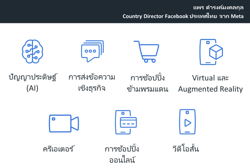 คำถามคือธุรกิจต่าง ๆ ควรตอบสนองอย่างไรกับเทรนด์เหล่านี้ สิ่งสำคัญคือต้องเข้าใจเป้าหมายของธุรกิจก่อน ไม่ว่าจะเป็นการสร้างแบรนด์หรือสร้างประสบการณ์การช้อปปิ้งที่เสมือนจริงยิ่งขึ้น เมื่อรู้ว่าเป้าหมายของคุณคืออะไร คุณก็จะสามารถเลือกกลยุทธ์ที่เหมาะสมได้ นอกจากนี้ การเล่าเรื่องราวของ แบรนด์ผ่านวิดีโอในรูปแบบและความยาวต่าง ๆ จะมีความสำคัญเป็นอย่างมากต่อผลลัพธ์ทางธุรกิจ ทั้งในแง่ของการสร้างแบรนด์และการค้นพบแบรนด์ ข้อดีของเทรนด์เหล่านี้ คือธุรกิจมีตัวเลือกในการเข้าถึงและเชื่อมต่อกับผู้คน และสามารถสร้างแบรนด์ผ่านประสบการณ์ได้อย่างหลากหลายมากขึ้น ไม่ว่าจะเป็นโซเชียล ออนไลน์ เทคโนโลยีเสมือนจริง หรือผ่านบทสนทนา จึงนับว่าเป็นพื้นที่น่าสนใจที่น่าสำรวจ ซึ่งที่ Meta เรามักจะพูดเสมอว่า “Begin Anywhere” - เริ่มจากตรงไหนก็ได้ เพราะวิธีการสร้างธุรกิจและเชื่อมต่อกับผู้บริโภคจะยังคงพัฒนาต่อไป และมีความหลากหลายมากขึ้นเรื่อยๆ