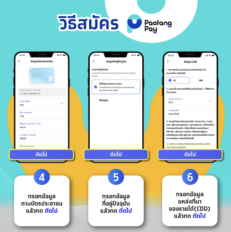 4).กรอกข้อมูลตามบัตรประชาชน แล้วกดถัดไป