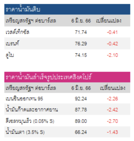 อย่างไรก็ตามหลังตลาดปิด สถาบันปิโตรเลียมด้านพลังงานสหรัฐฯ (API) เผยตัวเลขน้ำมันดิบคงคลังสหรัฐฯ ประจำสัปดาห์สิ้นสุด ณ วันที่ 2 มิ.ย. 66 ปรับตัวลดลง 1.7 ล้านบาร์เรล สวนทางกับที่นักวิเคราะห์คาดการณ์ว่าจะปรับเพิ่มขึ้น 1.0 ล้านบาร์เรล