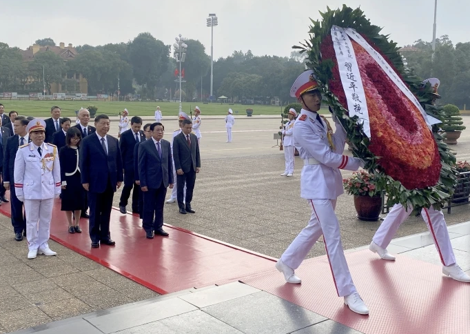 ในวันพุธ (13) ผู้นำจีนยังได้เดินทางไปวางพวงมาลาที่สุสานโฮจิมินห์ และได้พบหารือกับนายกรัฐมนตรีฝ่าม มีง จีง และประธานาธิบดีหวอ วัน เถือง