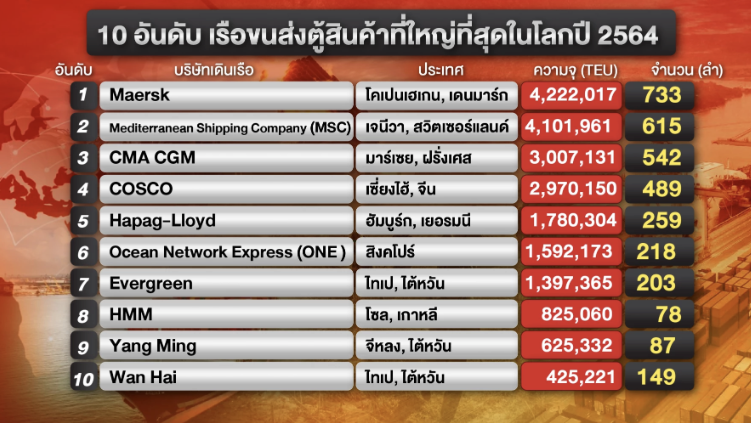 โดยทั้ง 4 บริษัทสายการเดินเรือ ถือเป็นรายใหญ่ท็อป 5 ของโลก