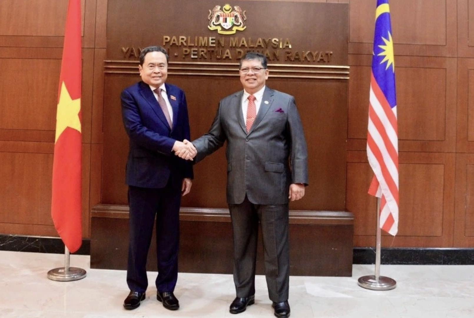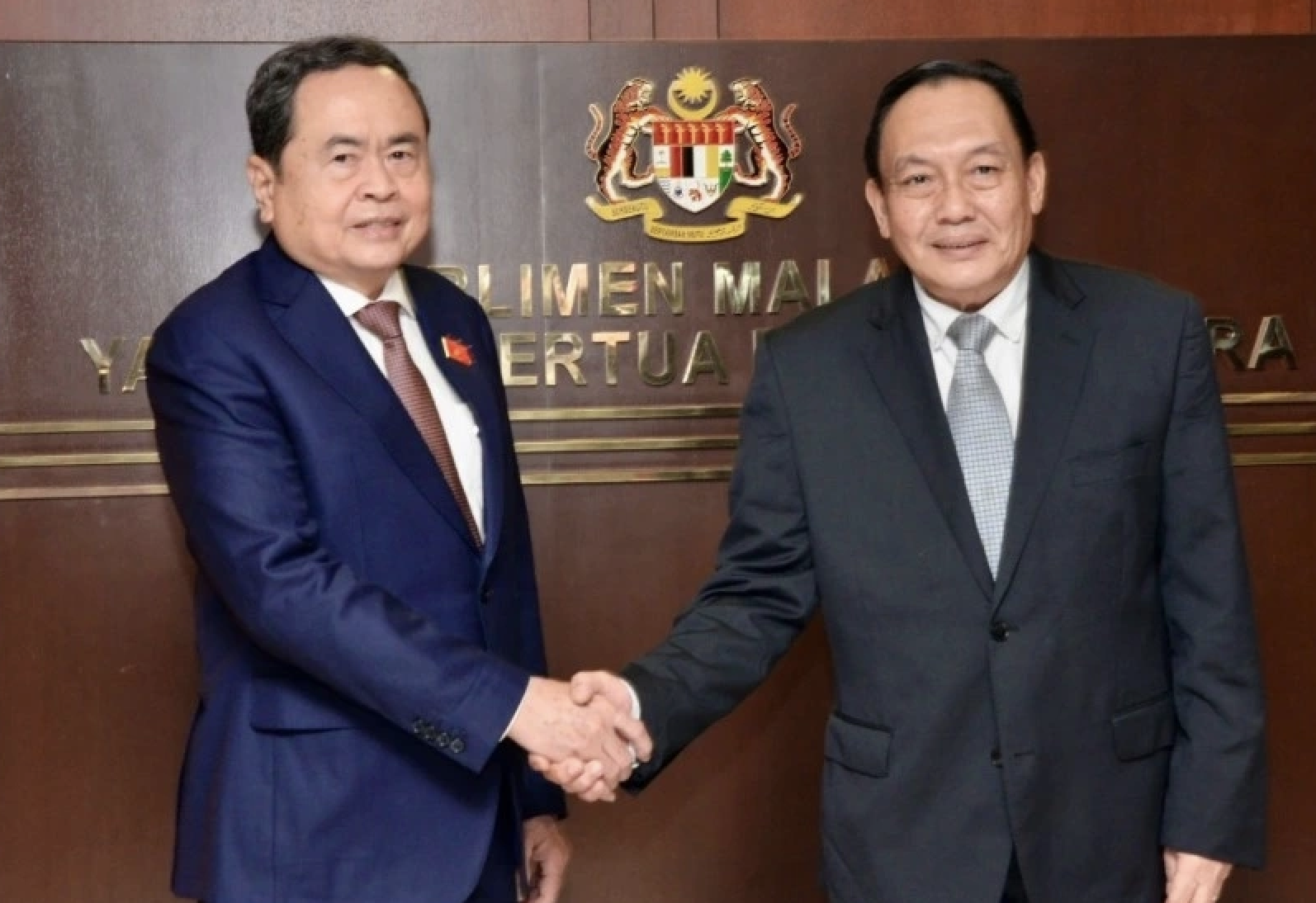 ประธานสภาผู้แทนราษฎรมาเลเซีย Tan Sri Dato' Johari bin Abdul และประธานรัฐสภา Tran Thanh Man