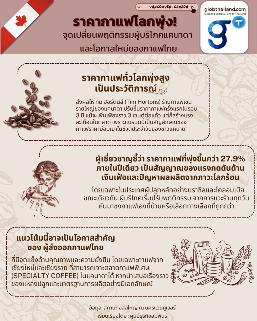 ราคากาแฟโลกพุ่ง! จุดเปลี่ยนพฤติกรรมผู้บริโภคแคนาดา และโอกาสใหม่ของกาแฟไทย