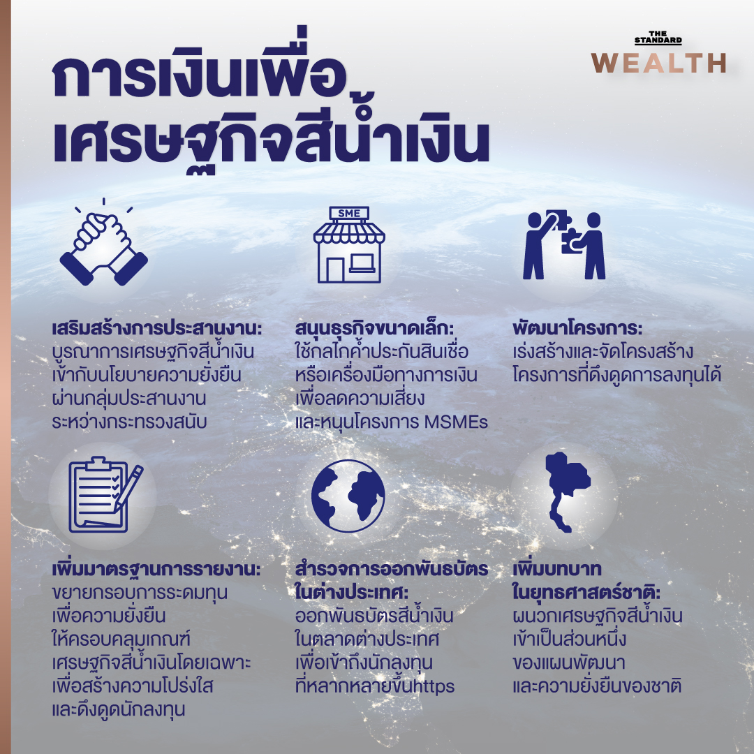 สิ่งนี้บ่งชี้ถึงตลาดที่กำลังเติบโตเต็มที่พร้อมกับการยอมรับผลิตภัณฑ์ทางการเงินเชิงนวัตกรรม เช่น พันธบัตรเพื่อเศรษฐกิจสีน้ำเงินที่เพิ่มขึ้น ซึ่งถือเป็นอีกเครื่องมือสำคัญในการระดมทุนสำหรับการพัฒนาที่ยั่งยืนของประเทศไทย