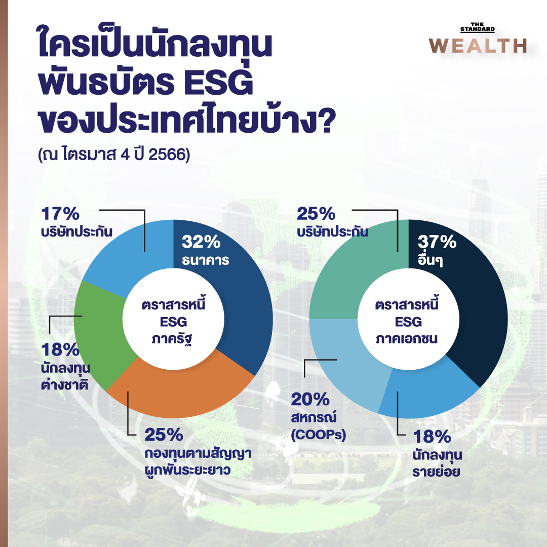 * พันธบัตร ESG ภาคเอกชน ส่วนใหญ่ถือครองโดยบริษัทประกันภัย (25%), สหกรณ์ (20%) และนักลงทุนรายย่อย (18%)