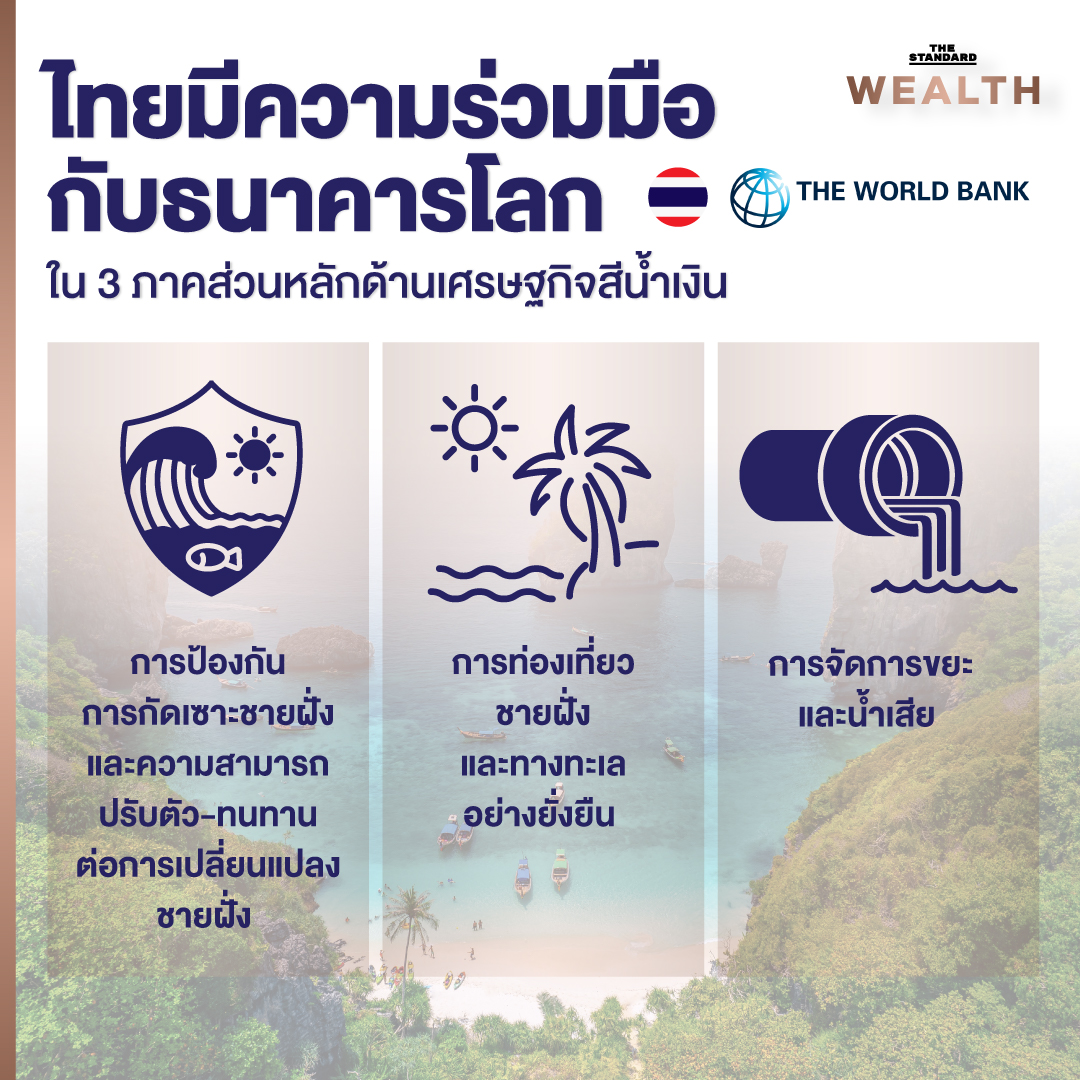 ทั้งโครงการในด้านการอนุรักษ์และป้องกันการกัดเซาะเพื่อสร้างความยืดหยุ่นของชายฝั่งทะเลไทย การส่งเสริมการท่องเที่ยวทางทะเลอย่างยั่งยืน และการจัดการขยะและมลพิษทางทะเลอย่างเป็นระบบ ทั้งหมดนี้ล้วนเป็นปัจจัยที่สะท้อนให้เห็นถึงศักยภาพและความพร้อมของประเทศไทยในการนำเครื่องมือทางการเงิ