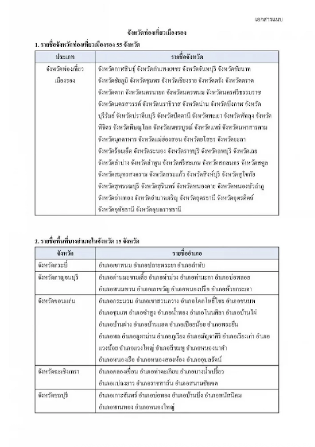 กระทรวงการคลัง ได้เปิดรายชื่อ 55 จังหวัดท่องเที่ยวรอง (และพื้นที่บางอำเภอใน 15 จังหวัด) ที่ผู้เดินทางจะได้รับสิทธิลดหย่อนภาษี 1.5 เท่า โดยกระจายไปในทุกภูมิภาค ดังนี้