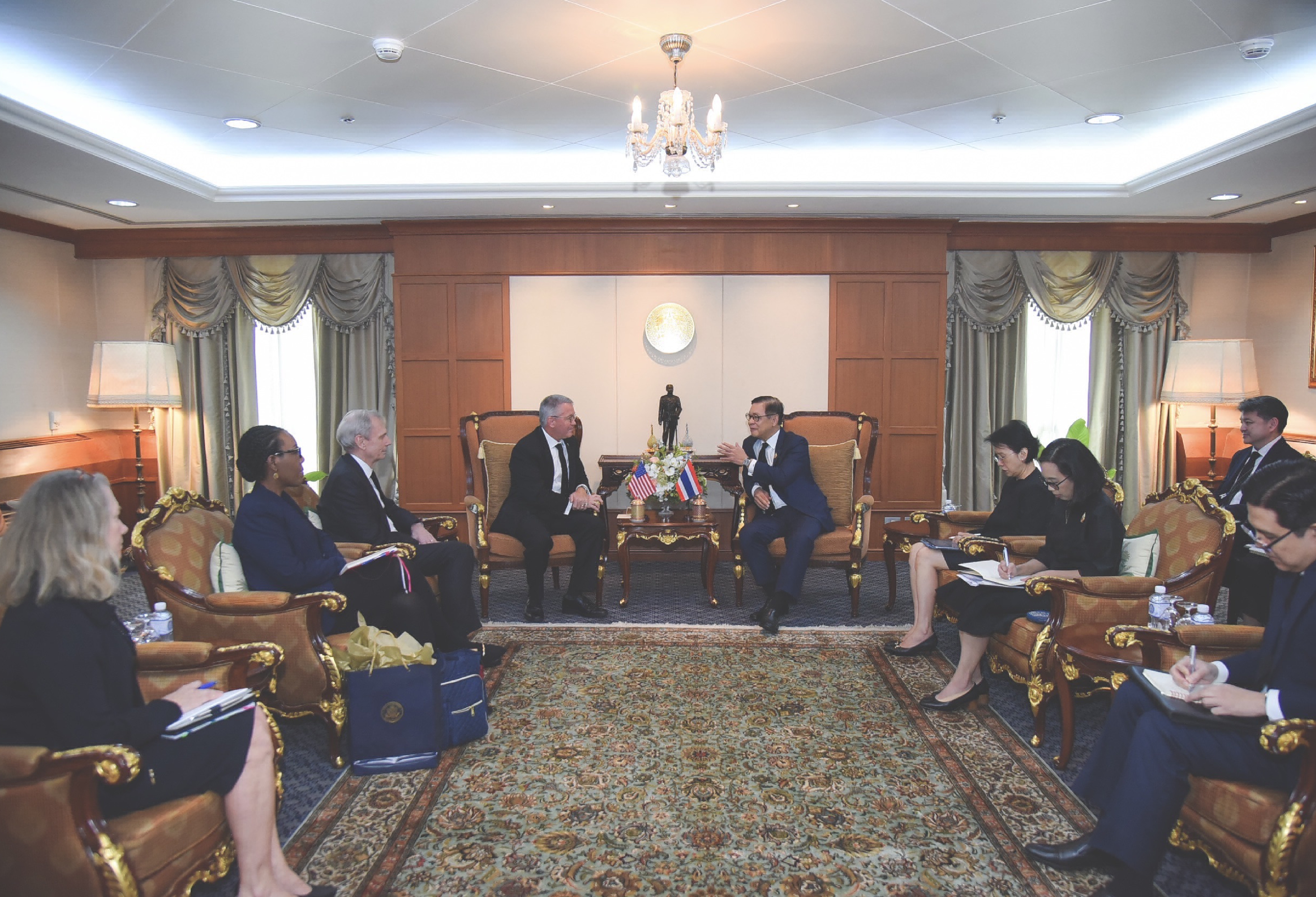 ทั้งสองฝ่ายยืนยันความมุ่งมั่นที่จะส่งเสริมความร่วมมือ ในฐานะที่ไทยเป็นพันธมิตรที่เก่าแก่และสำคัญของสหรัฐฯ ในภูมิภาคเอเชีย ซึ่งมีความสัมพันธ์ยาวนานกว่า 192 ปี พร้อมทั้งเน้นย้ำการเป็นมิตรและหุ้นส่วนในการส่งเสริมความร่วมมือทวิภาคี ระดับภูมิภาค และพหุภาคี โดยเห็นพ้องที่จะเพิ่มพูนการแลกเปลี่ยนการเยือนระดับสูง ตลอดจนความร่วมมือในการรับมือกับประเด็นท้าทายและภัยคุกคามรูปแบบใหม่ เช่น การปราบปรามอาชญากรรมออนไลน์ การเสริมสร้างความร่วมมือทางเศรษฐกิจ และการพัฒนาในระดับภูมิภาคและอนุภูมิภาค ขณะที่รัฐมนตรีฯ ได้กล่าวย้ำถึงความมุ่งมั่นของรัฐบาลไทยในการดำเนินการตามข้อตกลงภายใต้ถ้อยแถลงผลการหารือระหว่างนายกรัฐมนตรีของทั้งสองประเทศ พร้อมทั้งแสดงทัศนะเกี่ยวกับแนวทางความร่วมมือเพื่อส่งเสริมผลประโยชน์ร่วมกันในภูมิภาค
