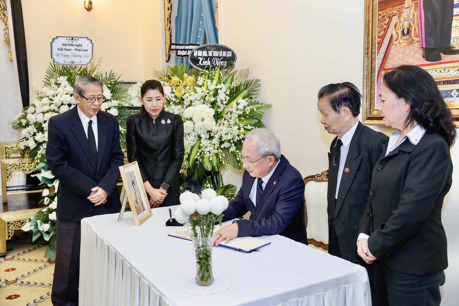 เมื่อวันที่ 5 พฤศจิกายน ที่กรุงฮานอย Sen. Lieut. Gen. Nguyen Van Thanh นายกสมาคมมิตรภาพเวียดนาม-ไทย, อดีตสมาชิกคณะกรรมการกลางพรรค นําคณะผู้แทนไปยังสถานทูตไทยใน กรุงฮานอย เวียดนาม เพื่อเยี่ยมเยียนและลงบันทึกความทรงจําของสมเด็จพระนางเจ้าสิริกิติ์