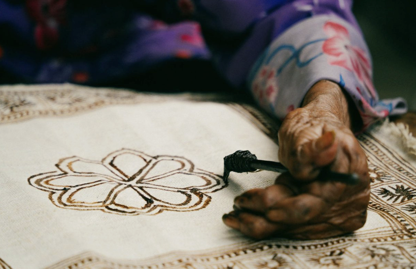 นอกเหนือจากการทอผ้าแล้ว ผู้หญิงของ Lung Tam ยังมีทักษะในการใช้ขี้ผึ้งละลายเพื่อวาดลวดลายบนผ้าลินิน เมื่อผ้าถูกย้อม บริเวณที่ปกคลุมด้วยขี้ผึ้งจะต่อต้านสี สร้างลวดลายที่โดดเด่น กระบวนการนี้อาจดูเรียบง่าย แต่ต้องใช้ความใส่ใจและความแม่นยําอย่างพิถีพิถัน