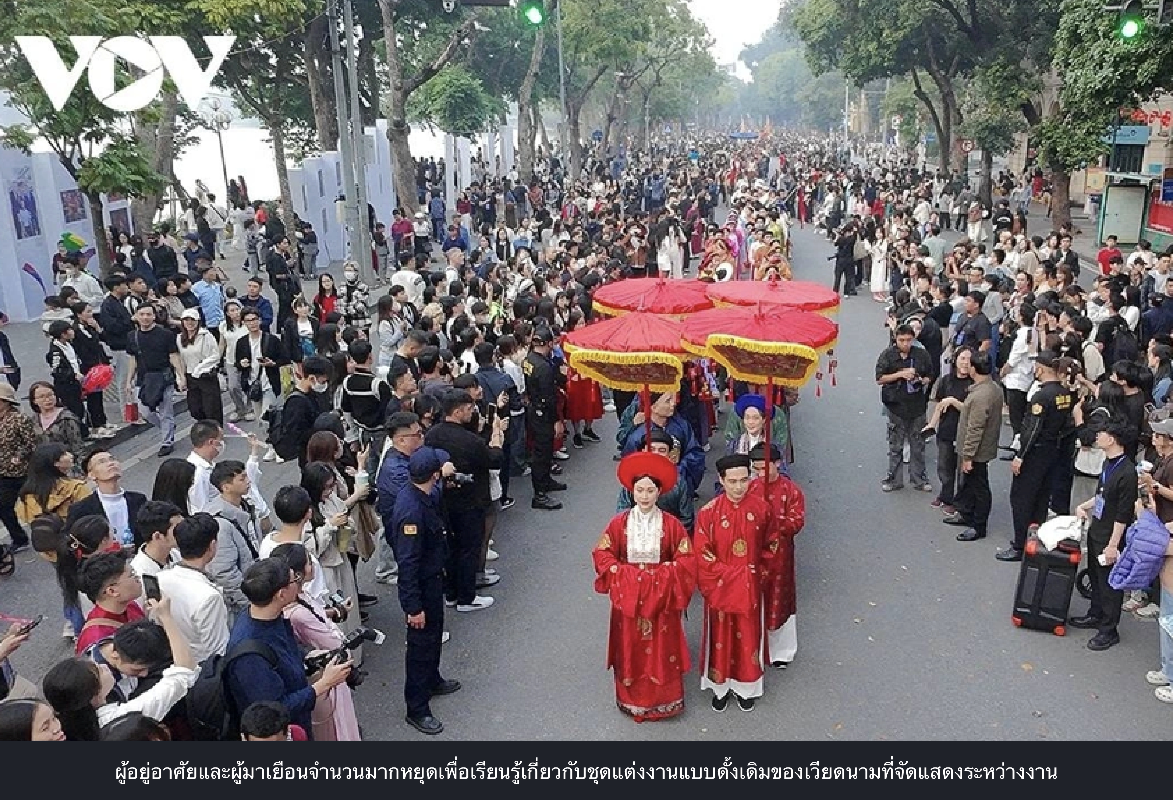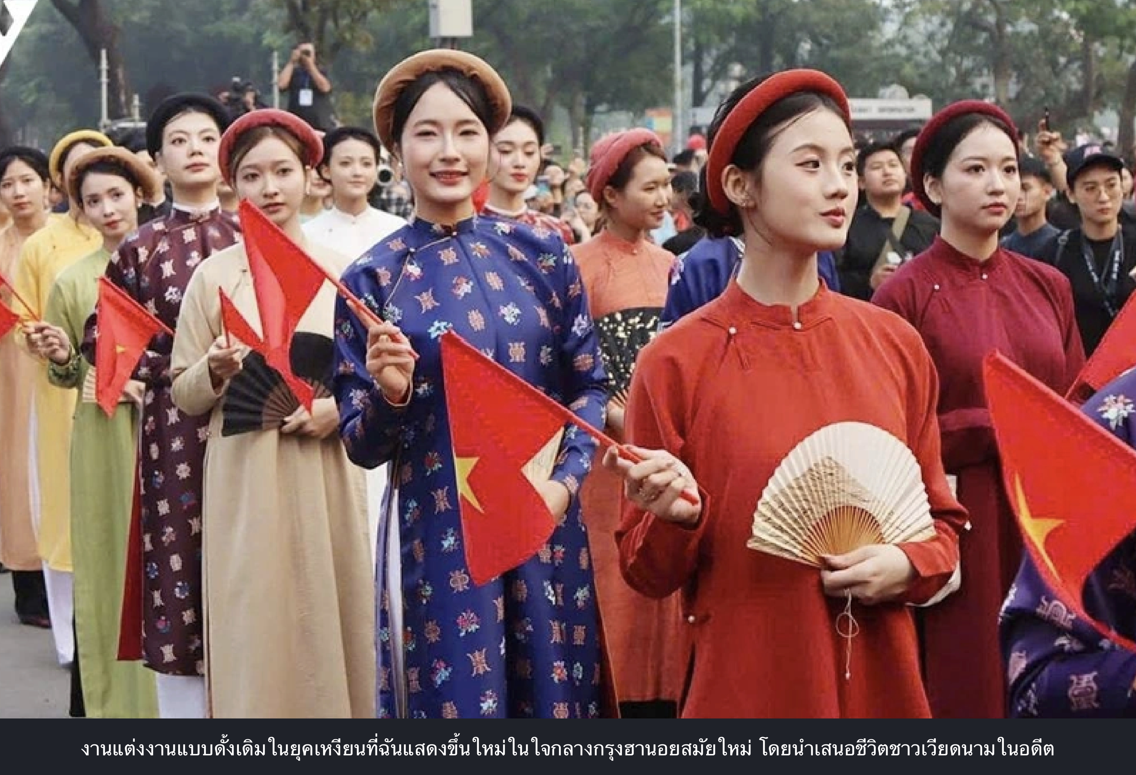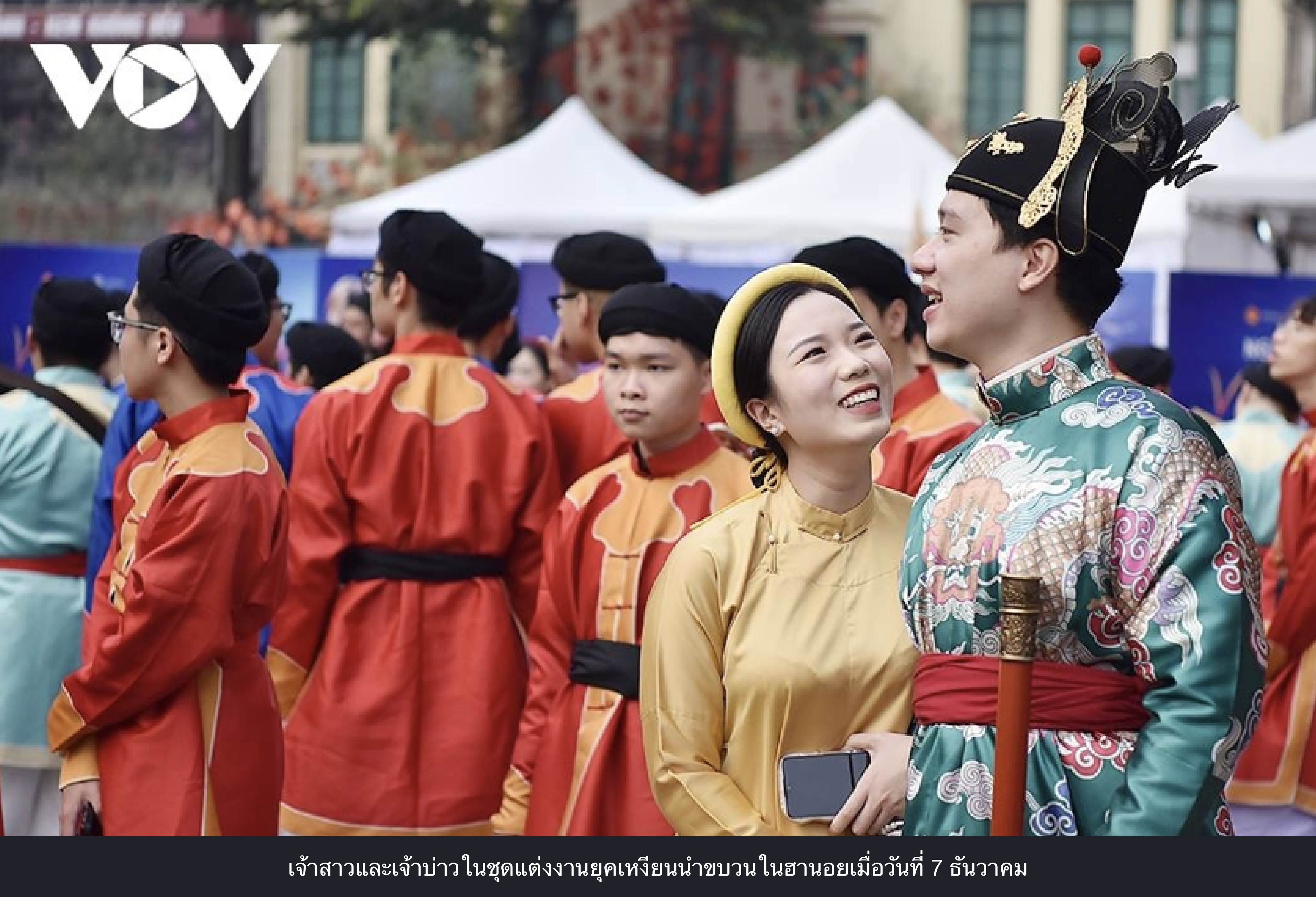 ท่องเที่ยว-วัฒนธรรม การฟื้นฟูพิธีกรรมการแต่งงานในยุคเหงียนทําให้ชาวฮานอยและผู้มาเยือนหลงใหล 2025-12-08 16:27:33 Admin TVFA 73 View หลายร้อยคนในชุดเวียดนามแบบดั้งเดิมแห่ไปรอบ ๆ ทะเลสาบฮวนเคี่ยมของฮานอยเมื่อวันที่ 7 ธันวาคม จําลองพิธีแต่งงานแบบเก่าที่ครั้งหนึ่งเคยพบได้ทั่วไปในเมืองหลวง ที่มา vov.vn วันที่ 7 ธันวาคม 2568