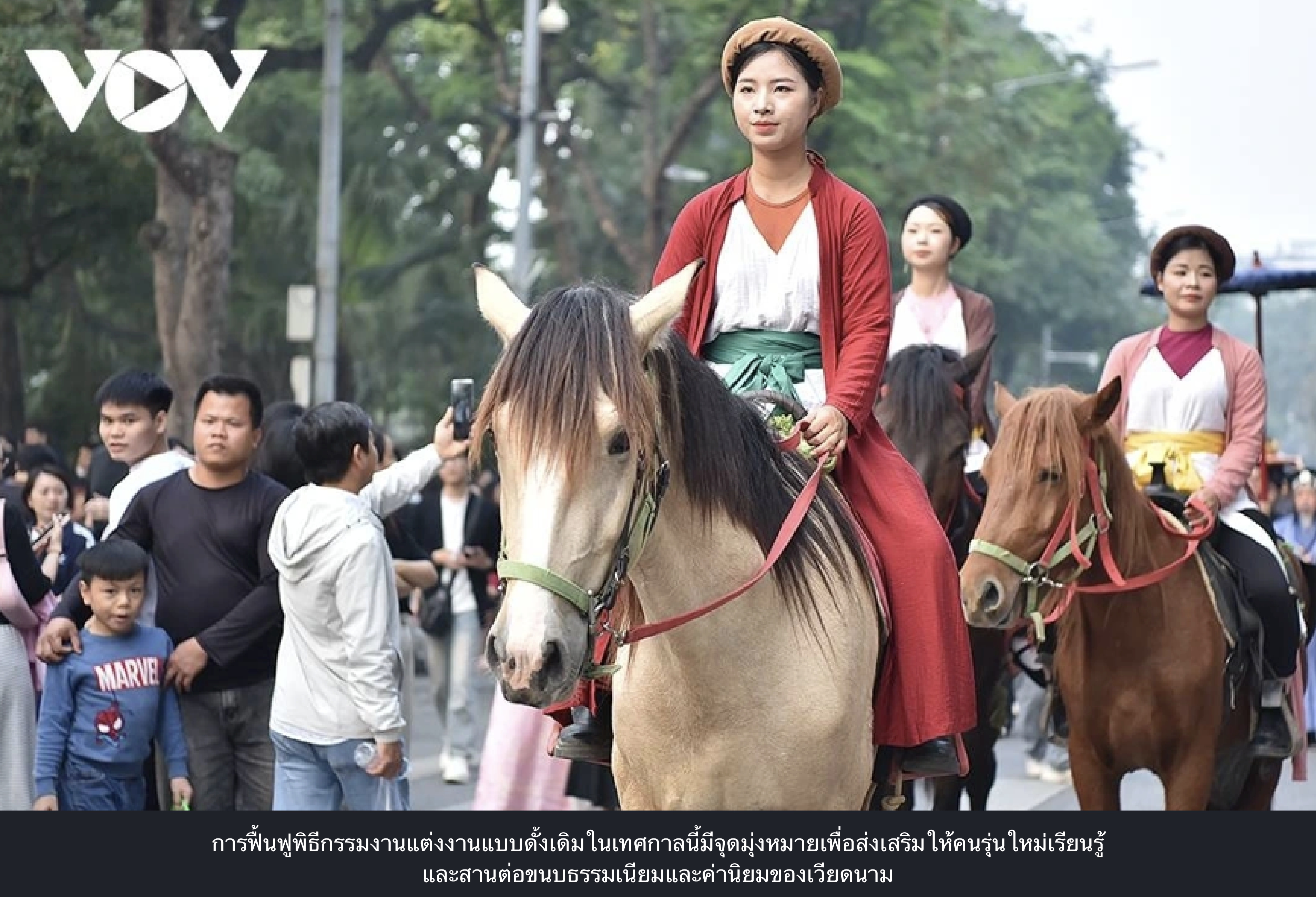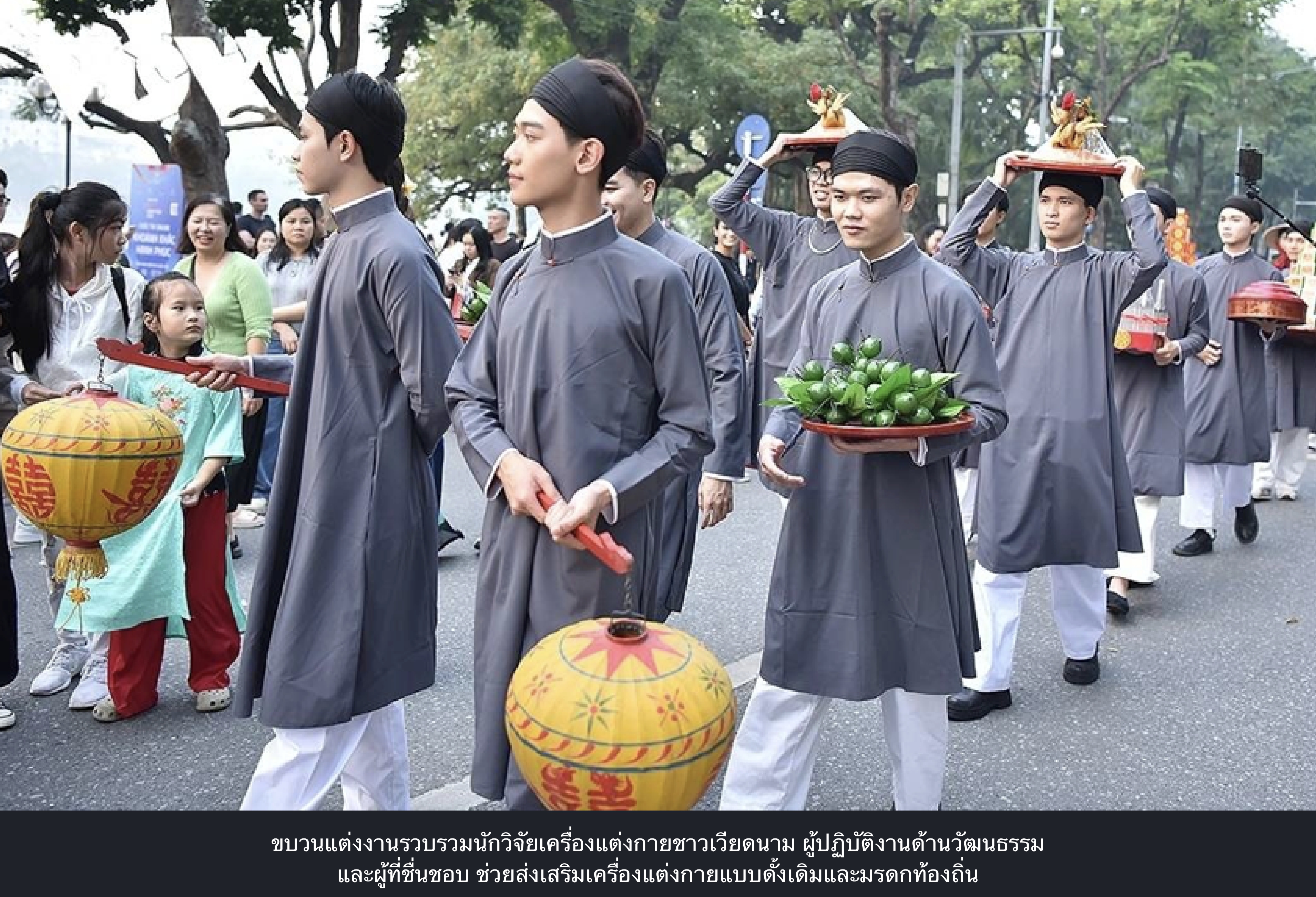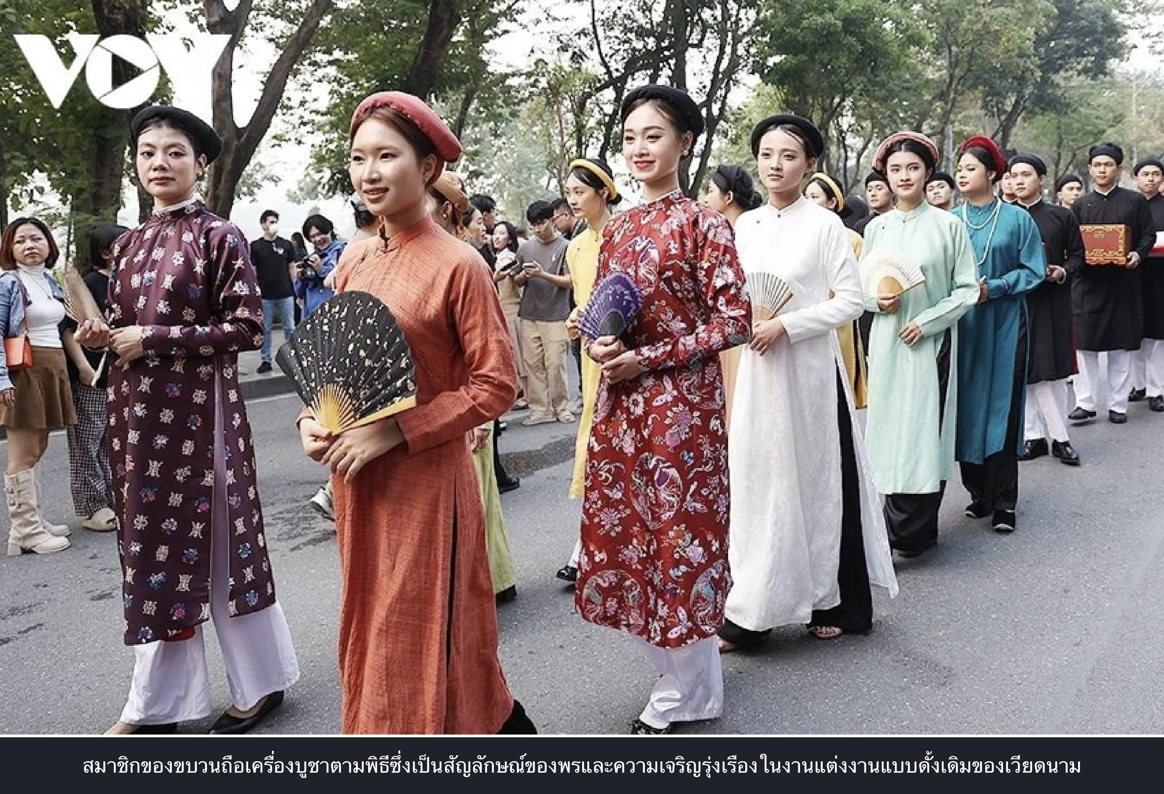 ท่องเที่ยว-วัฒนธรรม การฟื้นฟูพิธีกรรมการแต่งงานในยุคเหงียนทําให้ชาวฮานอยและผู้มาเยือนหลงใหล 2025-12-08 16:27:33 Admin TVFA 73 View หลายร้อยคนในชุดเวียดนามแบบดั้งเดิมแห่ไปรอบ ๆ ทะเลสาบฮวนเคี่ยมของฮานอยเมื่อวันที่ 7 ธันวาคม จําลองพิธีแต่งงานแบบเก่าที่ครั้งหนึ่งเคยพบได้ทั่วไปในเมืองหลวง ที่มา vov.vn วันที่ 7 ธันวาคม 2568