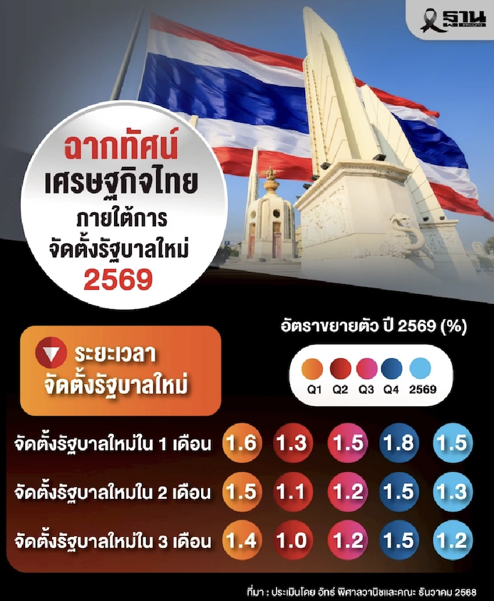 การเมืองไทยไม่มีเสถียรภาพส่งผลกระทบต่อเศรษฐกิจไทยทุกด้าน เสี่ยงทั้งเศรษฐกิจไทยในไตรมาสที่ 4/2568 และครึ่งปีแรก 2569 ซึ่งขึ้นกับการจัดตั้งรัฐบาลใหม่ว่า สามารถจัดตั้งได้เร็วแค่ไหน