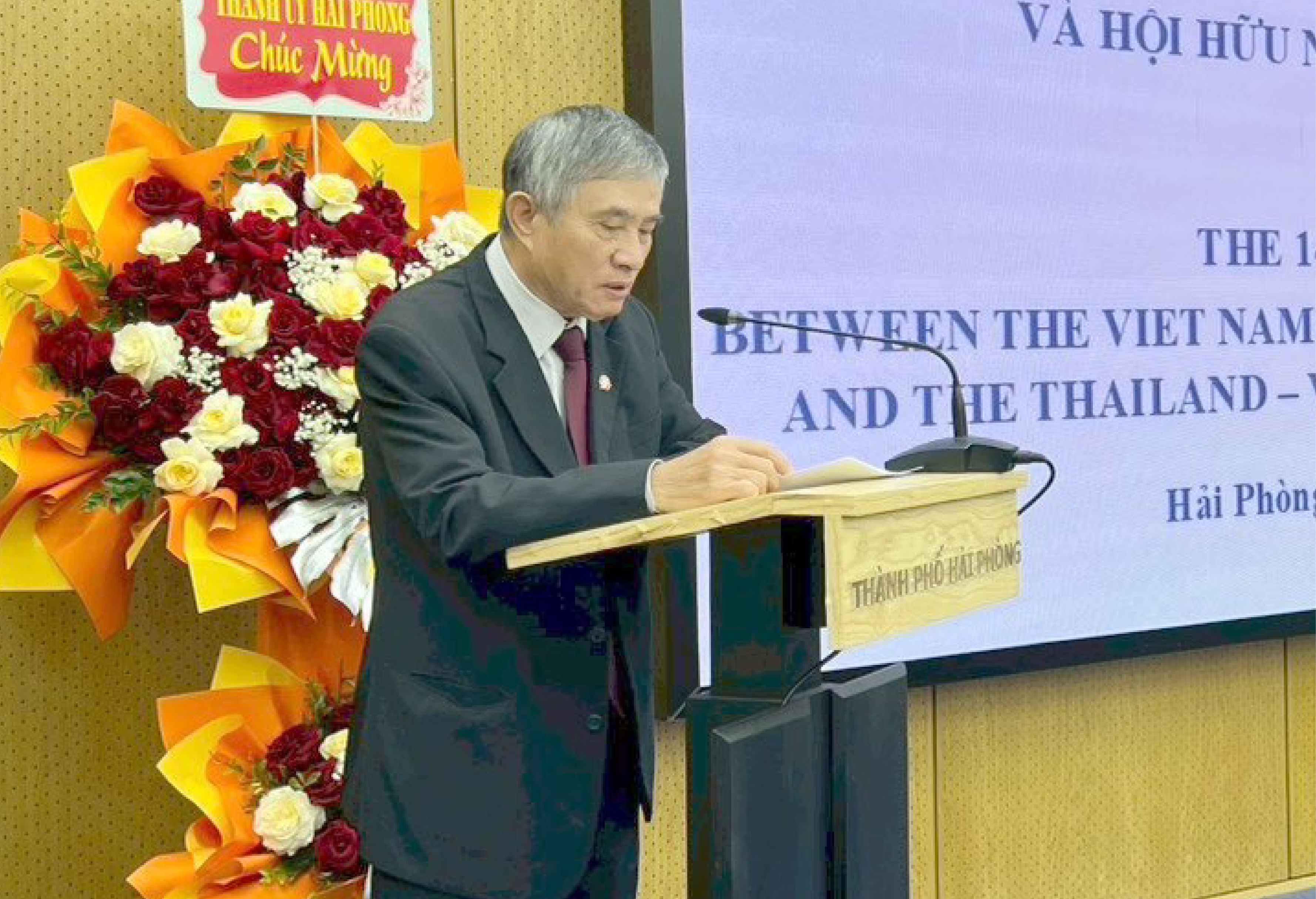 ได้รับเกียรติจาก Mr. Ông Hoàng Minh Cường กรรมาธิการพรรคเมือง รองประธานคณะกรรมการประชาชนเมืองไฮฟอง และ ท่านอุรวดี ศรีภิรมย์ เอกอัครราชทูต ณ กรุงฮานอย ขึ้นกล่าวต้อนรับผู้เข้าร่วมการประชุม และได้รับเกียรติจากผู้แทนจากสหภาพองค์กรมิตรภาพเมืองไฮฟอง, ผู้นําของหน่วยงานและสาขาต่างๆ ของเมือง สมาคมมิตรภาพเวียดนาม-ไทยในท้องถิ่น 12 แห่งเข้าร่วมการประชุม