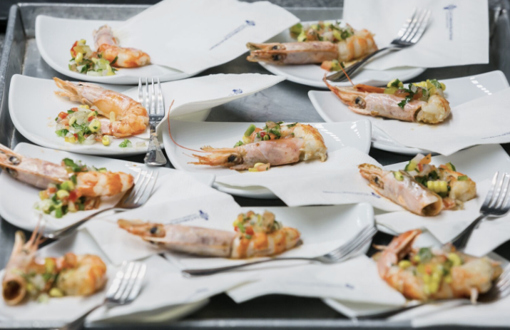 เมนูที่สองที่เซฟปาตริเซียสาธิตการทำคือ กุ้งในซอสข้าวโพด เป็นตัวแทนจากภูมิภาคปาตาโกเนีย ทางตอนใต้ของอาร์เจนตินา เซฟอธิบายว่าประเทศอาร์เจนตินามีชายฝั่งติดทะเลที่ยาวมาก ทำให้อาหารทะเลเป็นสินค้าที่โดดเด่นอย่างมากของอาร์เจนตินา กุ้งแดงอาร์เจนตินายังเป็นสินค้าส่งออกอันดับหนึ่งจากอาร์เจนตินามายังประเทศไทยด้วย ซึ่งเป็นที่นิยมอย่างมากในร้านอาหารในไทย กุ้งแดงอาร์เจนตินาเป็นกุ้งธรรมชาติ 100% จากแหล่งน้ำลึก รสชาติของเมนูกุ้งในซอสข้าวโพด ตัวกุ้งมีรสสัมผัสที่นุ่มและหวานแต่มีรสชาติเข้มข้น ต่างจากกุ้งไทยที่มีเนื้อเด้ง กุ้งที่ใช้ในการสาธิตทำอาหารได้รับการสนับสนุนจาก CP Uoriki ที่นำเข้ากุ้งมาจากอาร์เจนตินา