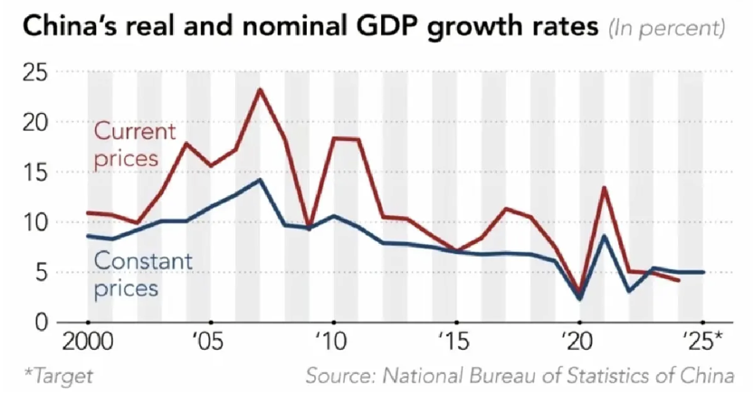 ในปี 2568 ที่ผ่านมา จีนทำผลงานได้ตามเป้าหมาย GDP ที่ตั้งไว้ 5% โดยในช่วง 9 เดือนแรกเศรษฐกิจขยายตัวได้ถึง 5.2% ซึ่งถือว่าเป็นการรักษามาตรฐานเดิมที่จีนพยายามตั้งเป้าไว้ที่ "ประมาณ 5%" ติดต่อกันมาตลอด 3 ปีล่าสุด