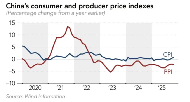 ในปีที่ผ่านมา จีนได้เริ่มแคมเปญเพื่อสู้กับ "ภาวะเงินฝืด" โดยหวังจะหยุดสงครามตัดราคาที่รุนแรงเกินไป ซึ่งแม้ว่าราคาสินค้าที่ผู้บริโภคซื้อจะเริ่มกระเตื้องขึ้นบ้างในเดือนพ.ย. แต่ฝั่ง "ราคาหน้าโรงงาน" (PPI) กลับย่ำแย่ เพราะตัวเลขยังคงติดลบต่อเนื่องมานานกว่า 3 ปีแล้ว ซึ่งสะท้อนว่าผู้ผลิตยังคงต้องยอมขายของในราคาที่ถูกลงเรื่อยๆ