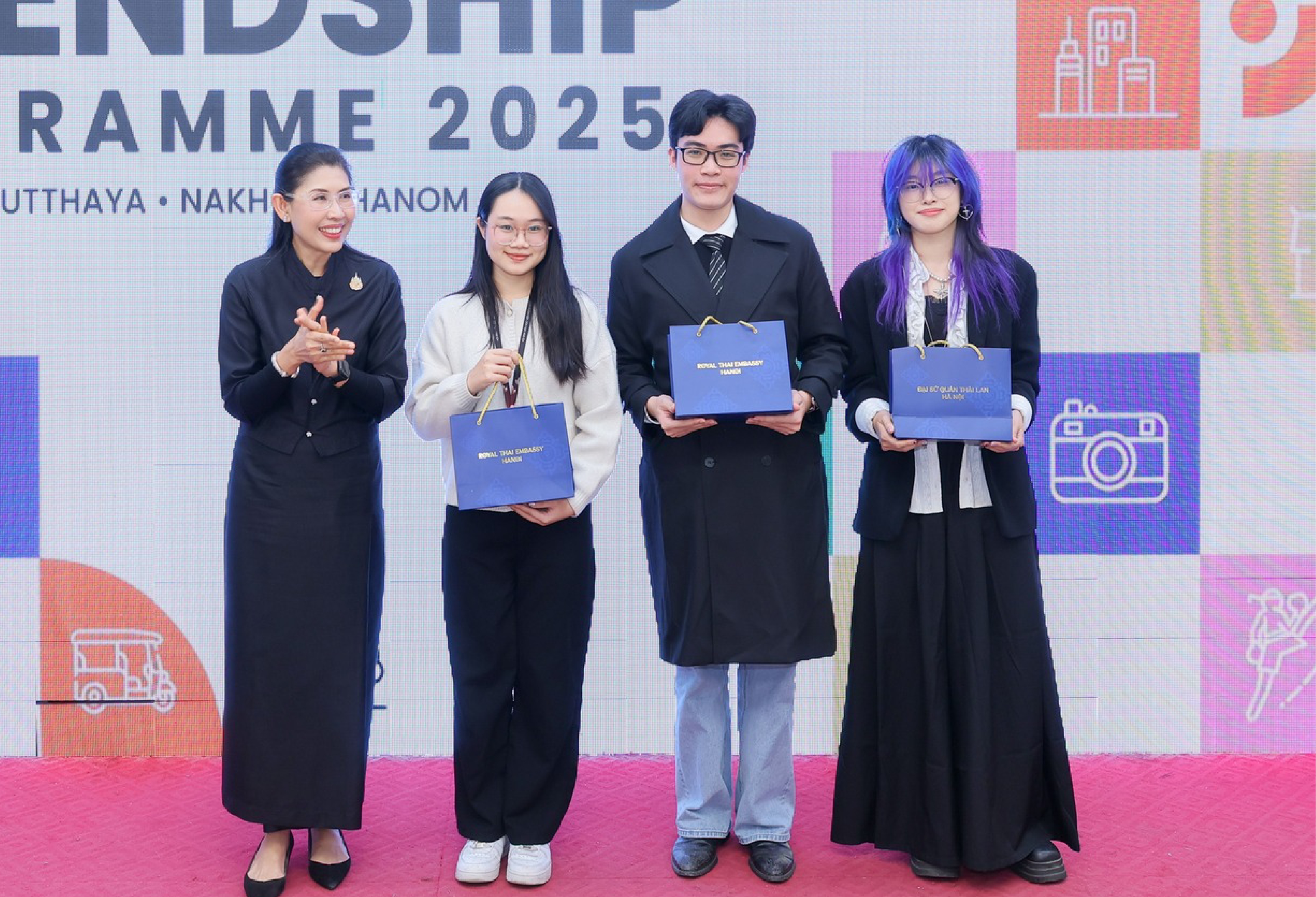 Nhân dịp này, Đại sứ đã trao giải cho các bạn trẻ tham gia Chương trình giao lưu hữu nghị Thái Lan – Việt Nam và đoạt giải Cuộc thi video ngắn với chủ đề “Beyond Borders: A Visual Diary of Thailand–Viet Nam Friendship”, chia sẻ trải nghiệm của những người tham gia chương trình và thể hiện tình hữu nghị giữa Thái Lan và Việt Nam, hướng tới kỷ niệm 50 năm thiết lập quan hệ ngoại giao Thái Lan – Việt Nam vào năm 2026, cụ thể như sau: