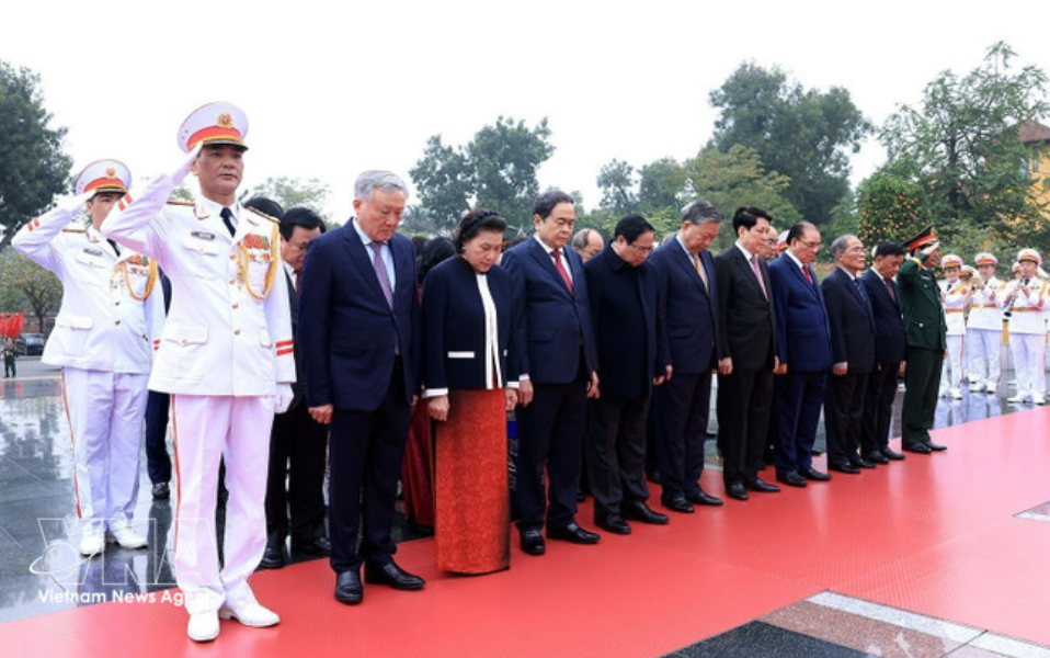 พรรค ผู้นํารัฐแสดงความเคารพต่อประธานาธิบดีโฮจิมินห์ก่อนวันตรุษจีน