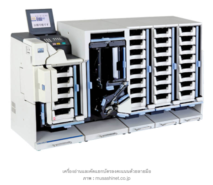 ขณะที่การนับคะแนนนั้น เจ้าหน้าที่จะนำบัตรเลือกตั้งไปใส่ในเครื่องอ่านและคัดแยกบัตรลงคะแนน ที่มีระบบสแกนลายมือ ทำให้แยกได้ว่าบัตรเลือกตั้งใดเขียนชื่อผู้สมัครหรือพรรคการเมืองใด ซึ่งทำให้การนับคะแนนมีประสิทธิภาพ รวดเร็วและโปร่งใสมากขึ้น โดยในกรณีที่ลายมืออ่านยากจึงจะใช้เครื่องตรวจสอบอีกครั้งหนึ่ง