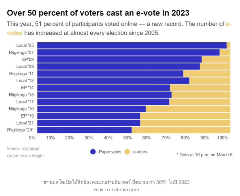 เอสโตเนียที่มุ่งเน้นการพัฒนาและบริหารประเทศด้วยเทคโนโลยีดิจิทัลผ่านระบบ e-Governance เป็นเพียงประเทศเดียวในโลกที่อนุญาตให้พลเมืองลงคะแนนเลือกตั้งผ่านระบบอินเทอร์เน็ต (i-Voting) ไปพร้อมกับระบบการลงคะแนนแบบบัตรเลือกตั้งกระดาษที่หน่วยเลือกตั้ง