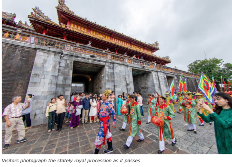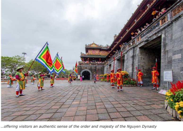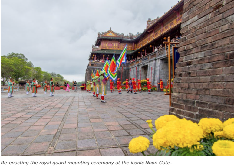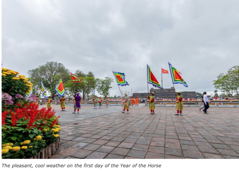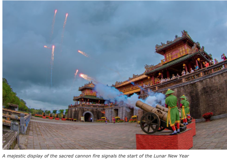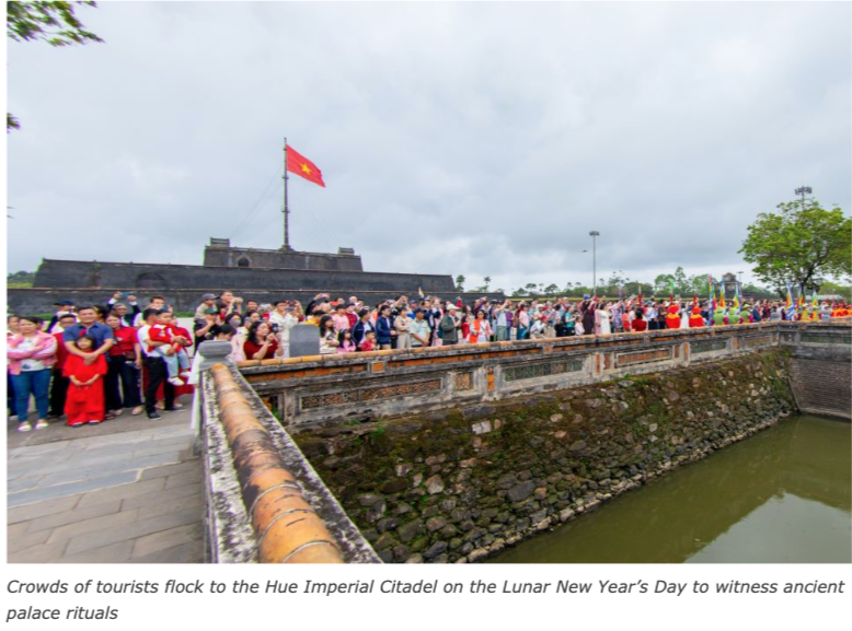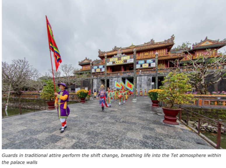 เว้ – ในเช้าวันที่สดใสของวันแรกของวันตรุษจีนปี 2026 ป้อมปราการแห่งจักรวรรดิเว้ในเมืองเว้ต้อนรับผู้มาเยือนด้วยการแสดงพิธีติดตั้งทหารรักษาพระองค์อีกครั้งและเสียงคํารามของปืนใหญ่ศักดิ์สิทธิ์ที่เปิดประตูอันทรงพลังสําหรับเทศกาลตรุษจีน