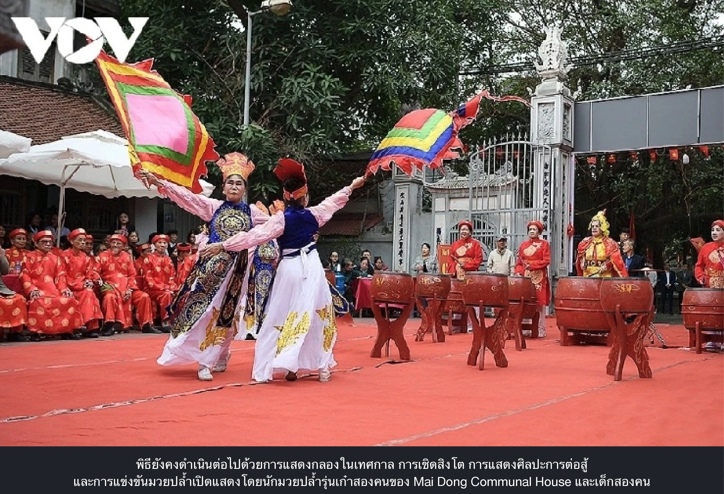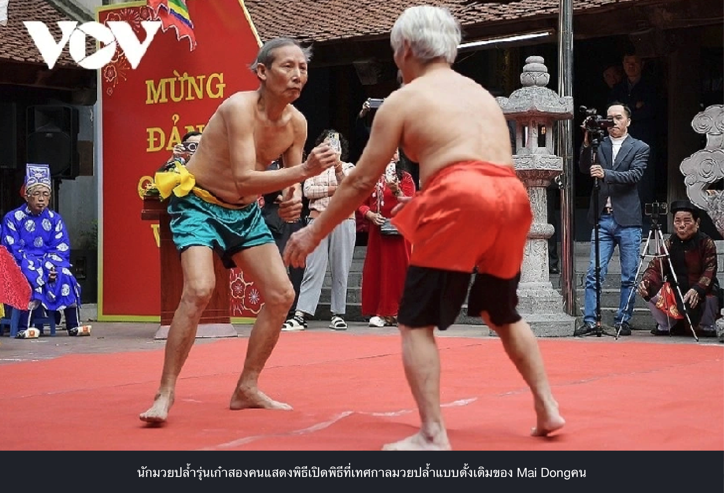 เทศกาลมวยปล้ําแบบดั้งเดิมของ Mai Dong เปิดในวันที่ 20 กุมภาพันธ์ (วันที่สี่ของปีใหม่ทางจันทรคติ) ที่ Mai Dong Communal House ใน Tuong Mai Ward ฮานอย ในบรรยากาศที่มีชีวิตชีวาและรื่นเริง งานประจําปีเป็นเทศกาลพื้นบ้านที่โดดเด่นซึ่งสะท้อนถึงมรดกทางประวัติศาสตร์และวัฒนธรรม ตลอดจนจิตวิญญาณการต่อสู้ของทังลอง ซึ่งเป็นชื่อเดิมของฮานอย