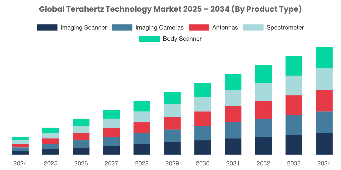 ขณะเดียวกันตลาดเทระเฮิรตซ์ทั่วโลกมีการเติบโตอย่างรวดเร็ว ทั้งการประยุกต์ใช้งานและการผลิตอุปกรณ์เทระเฮิรตซ์ โดยคาดว่าในอีก 5–10 ปีข้างหน้ามูลค่าตลาดจะเพิ่มขึ้นเกือบสองเท่า จากมูลค่าราว 819 ล้านดอลลาร์สหรัฐในปี ค.ศ.2025 ไปสู่กว่า 1,700 ล้านดอลลาร์สหรัฐภายในปี ค.ศ.2030 หรือเติบโตเฉลี่ยกว่า 15% ต่อปี [7] การเติบโตเหล่านี้มีแรงหนุนจากการพัฒนาแหล่งกำเนิดคลื่นและระบบตรวจวัดที่มีขนาดเล็กลงและประสิทธิภาพสูงขึ้น มีแนวโน้มที่จะพร้อมใช้งานได้จริงทั้งในด้านอุตสาหกรรมมูลค่าสูง ด้านความปลอดภัย ด้านการแพทย์ และด้านการวิจัยเชิงลึก