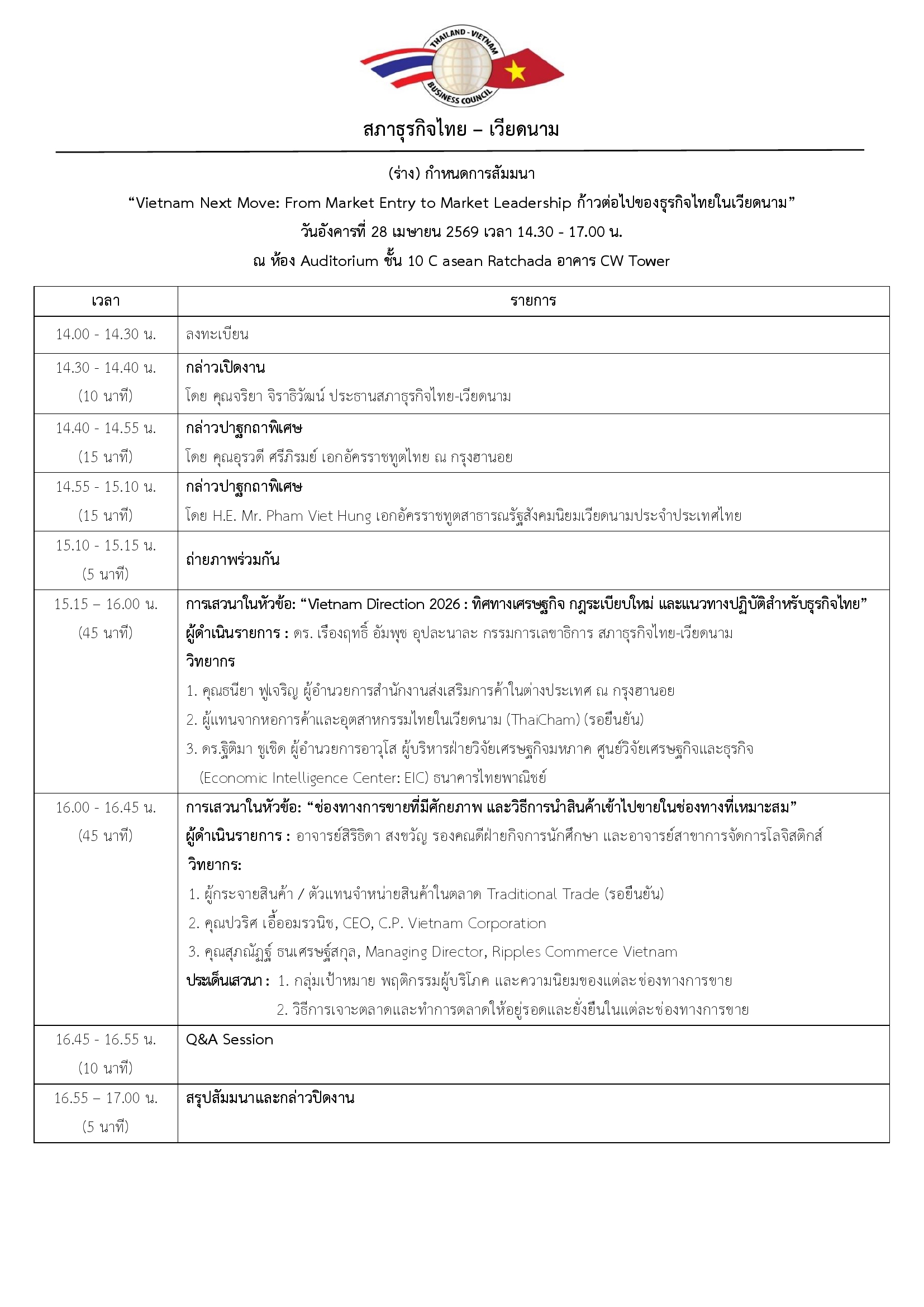 ✅ การเสวนาในหัวข้อ: "Vietnam Direction 2026 : ทิศทางเศรษฐกิจ กฎระเบียบใหม่ และแนวทางปฏิบัติสำหรับธุรกิจไทย"โดย สำนักงานส่งเสริมการค้าในต่างประเทศ ณ กรุงฮานอย / ภาคเอกชนไทยในเวียดนาม / ภาคภาคธนาคาร