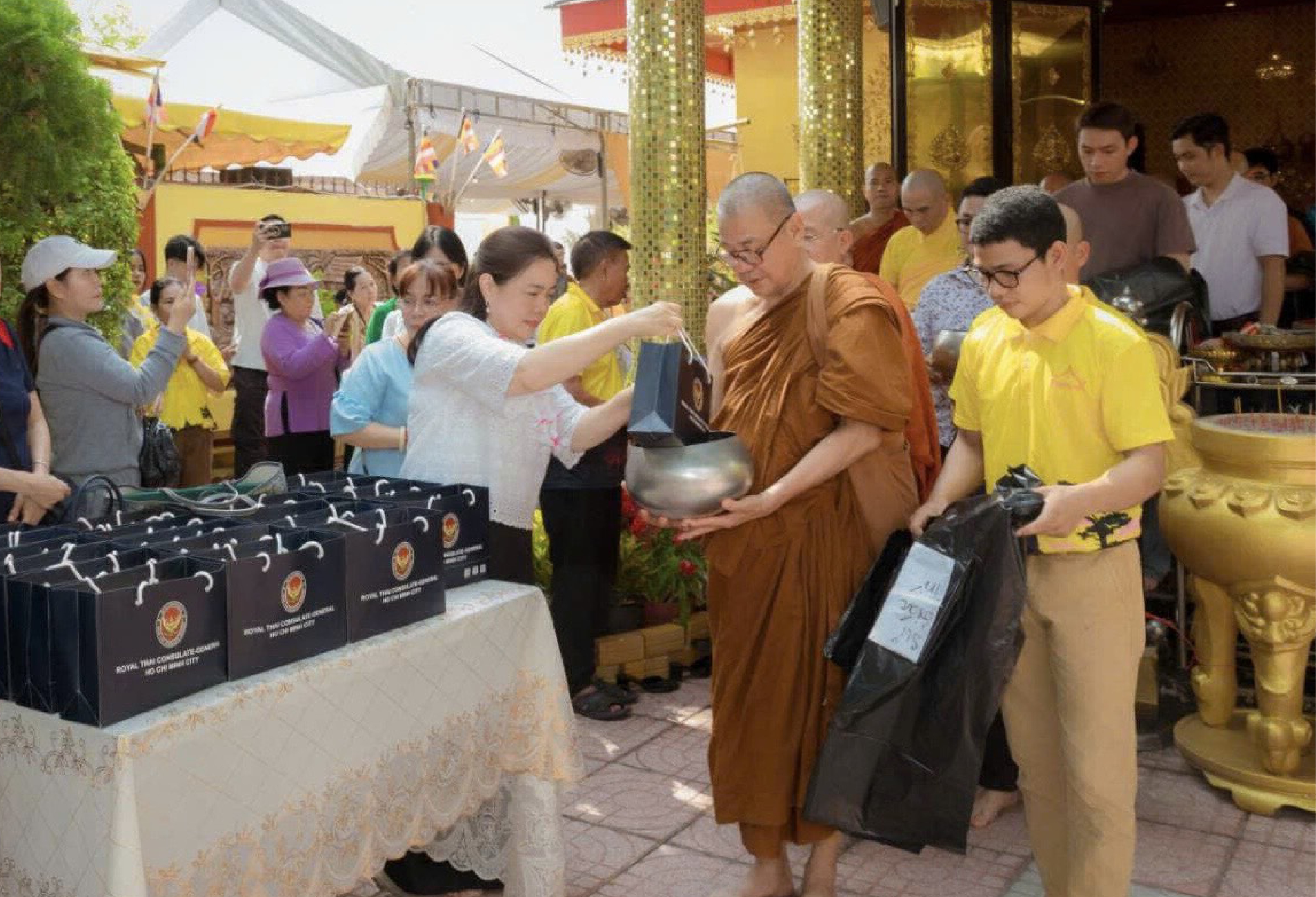 ในงานวันสงกรานต์ดังกล่าว ประกอบด้วยการทำบุญตักบาตรพระภิกษุสงฆ์และภิกษุณีไทยและเวียดนาม จำนวนกว่า 30 รูป พิธีสรงน้ำพระพุทธรูปและพระภิกษุสงฆ์ พิธีทอดผ้าป่าสามัคคี และการถวายภัตตาหารเพลแด่พระภิกษุสงฆ์